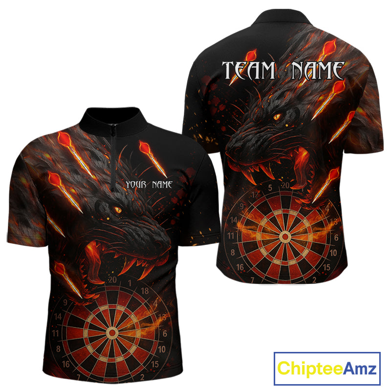 Black And Orange Panther Fire Dart Shirt For Men Custom 3D Dart League Team Jersey Polo & 1/4 Zip TDM4269