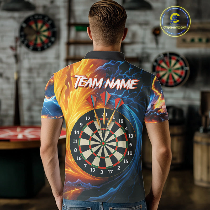 Personalized Blue And Orange Swirl Fire Flame Dart Shirt For Men Custom Darts League Team Jersey TDM4270