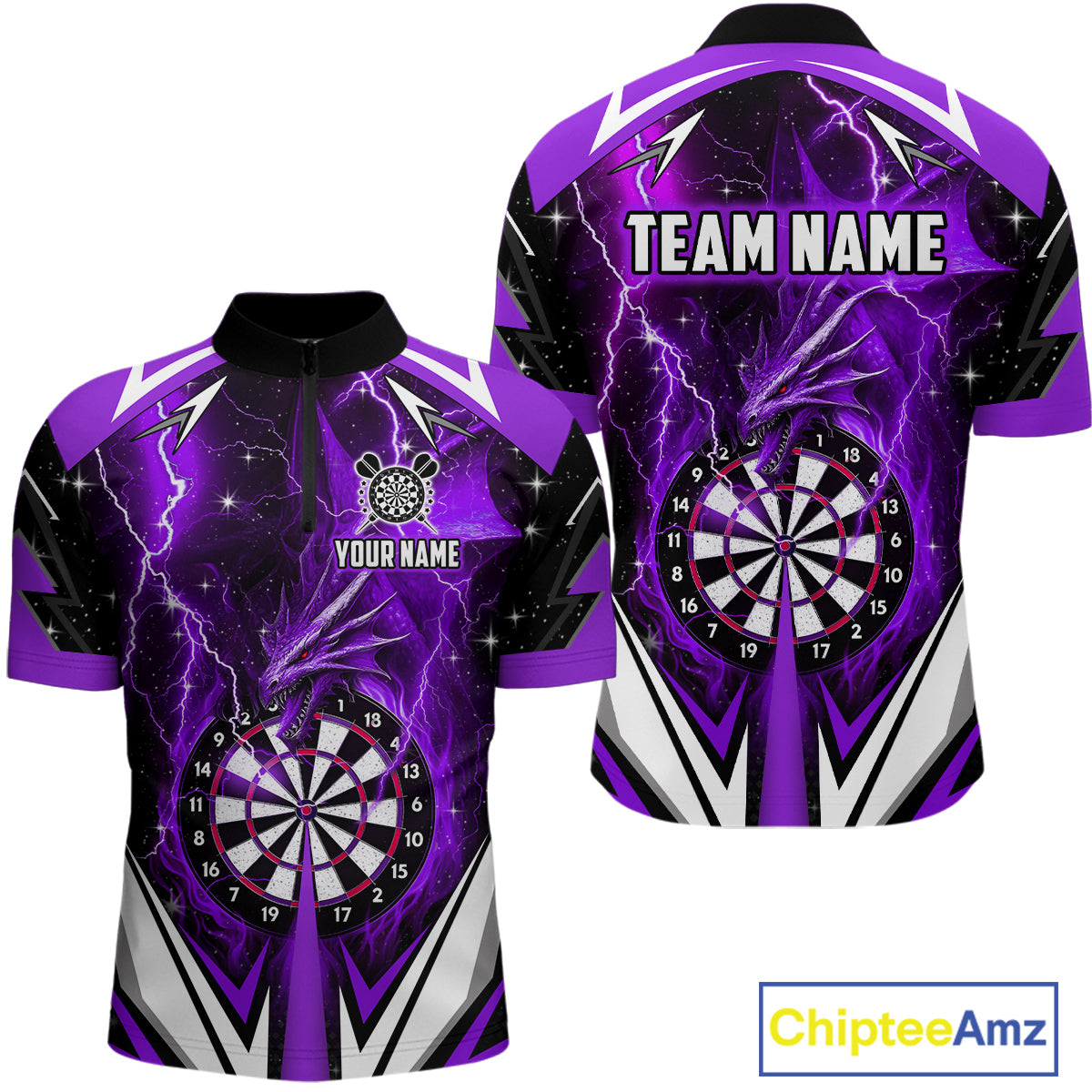 Purple Darts Jerseys Custom Thunder Lightning Dragon Dart Shirt Team Polo & Quarter Zip For Men TDM4316