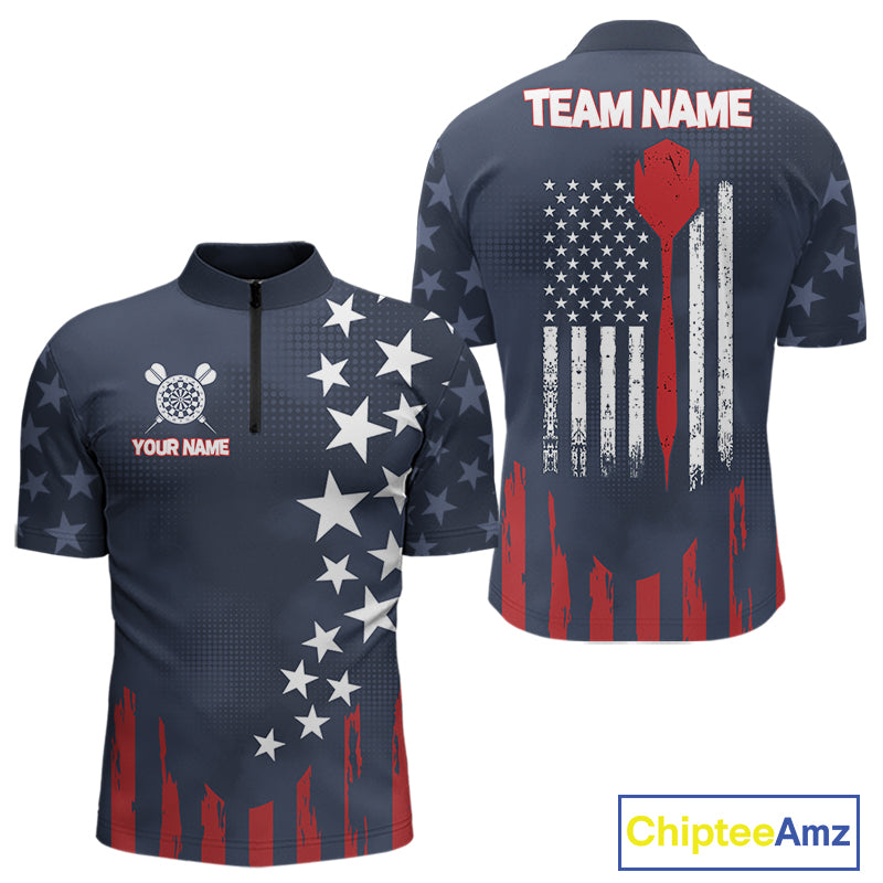 Personalized American Flag Navy Blue Darts Shirt For Men Custom Patriotic Darts Team Jerseys TDM4343