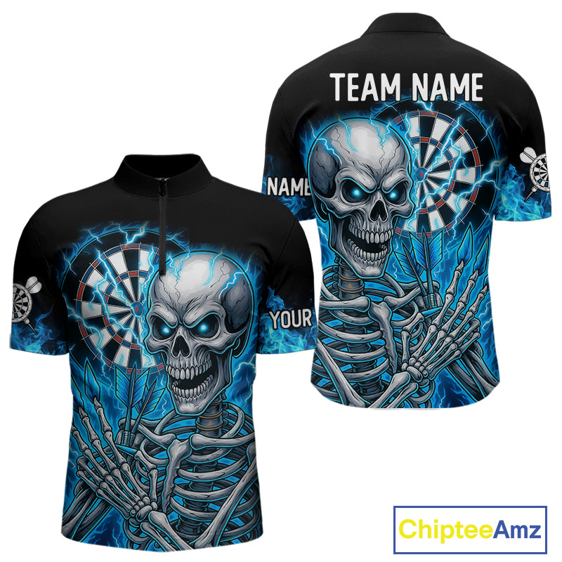 Blue Flaming Lightning Skeleton Darts Shirt For Men Custom Darts Jersey Team Polo & Quarter Zip TDM4344