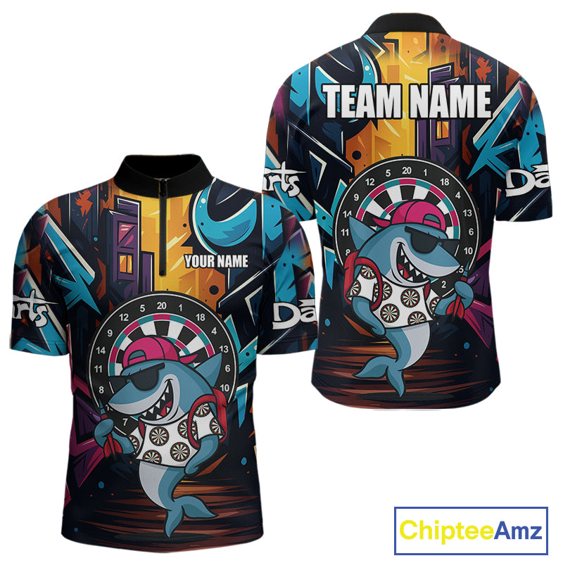 Funny Shark Colorful Graffiti Style Custom Dart Shirts For Men, Dart Team Jersey Best Darts Outfit TDM4423