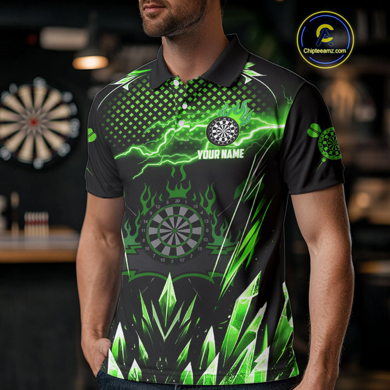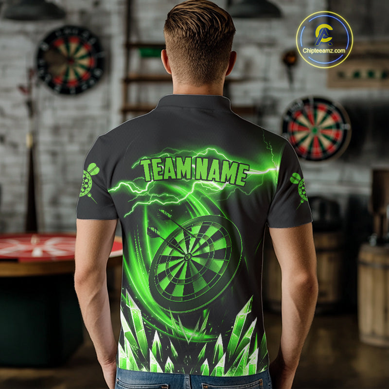Personalized Green Icy Lightning Darts Shirt For Men Custom Dart League Team Jersey Polo & 1/4 Zip TDM4464