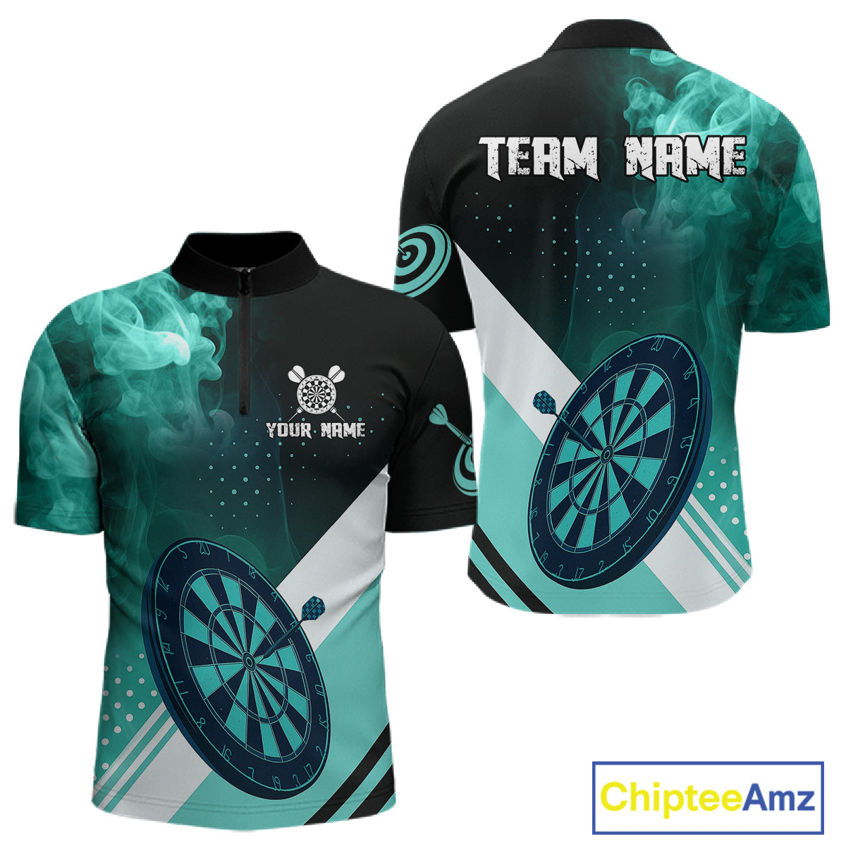 Personalized Turquoise Smoke Darts Shirt For Men Custom Darts Jersey Team Polo & 1/4 Zip Outfit TDM4534