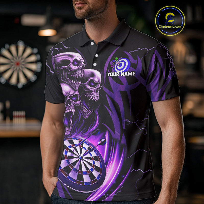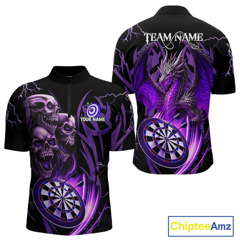 Personalized Skull & Dragon Darts Shirt For Men Custom Lightning Dartboard Team Jersey |Purple TDM4537