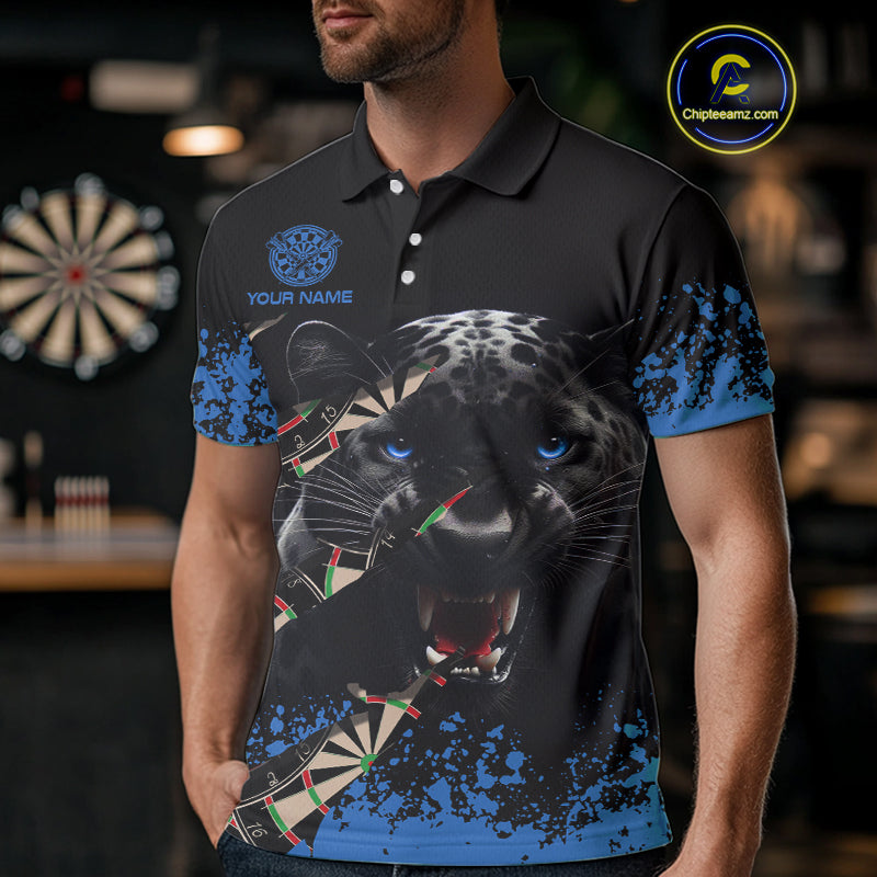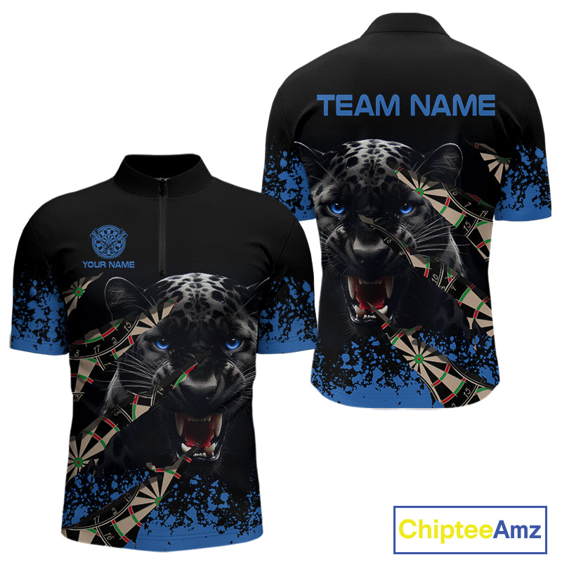 Black And Blue Grunge Panther Darts Shirt Polo & Quarter Zip For Men Custom Darts Team Jersey TDM4582