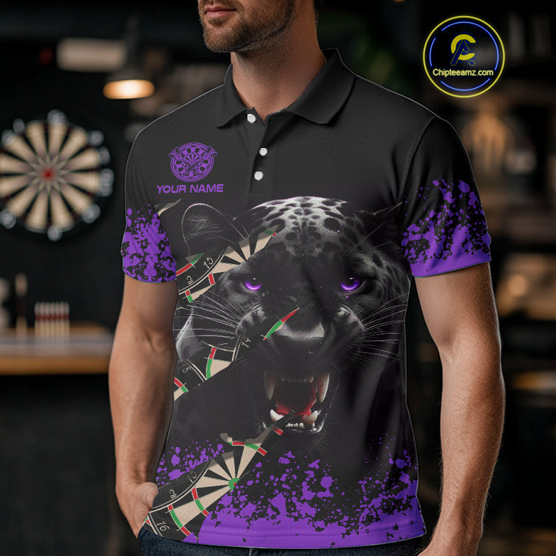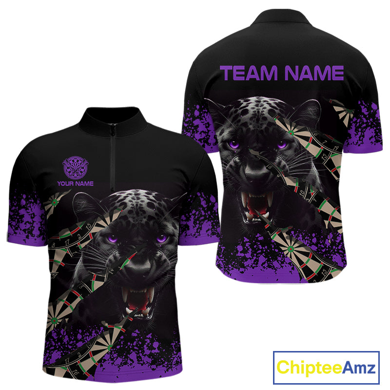 Black And Purple Grunge Panther Darts Shirt Polo & Quarter Zip For Men Custom Darts Team Jersey TDM4583