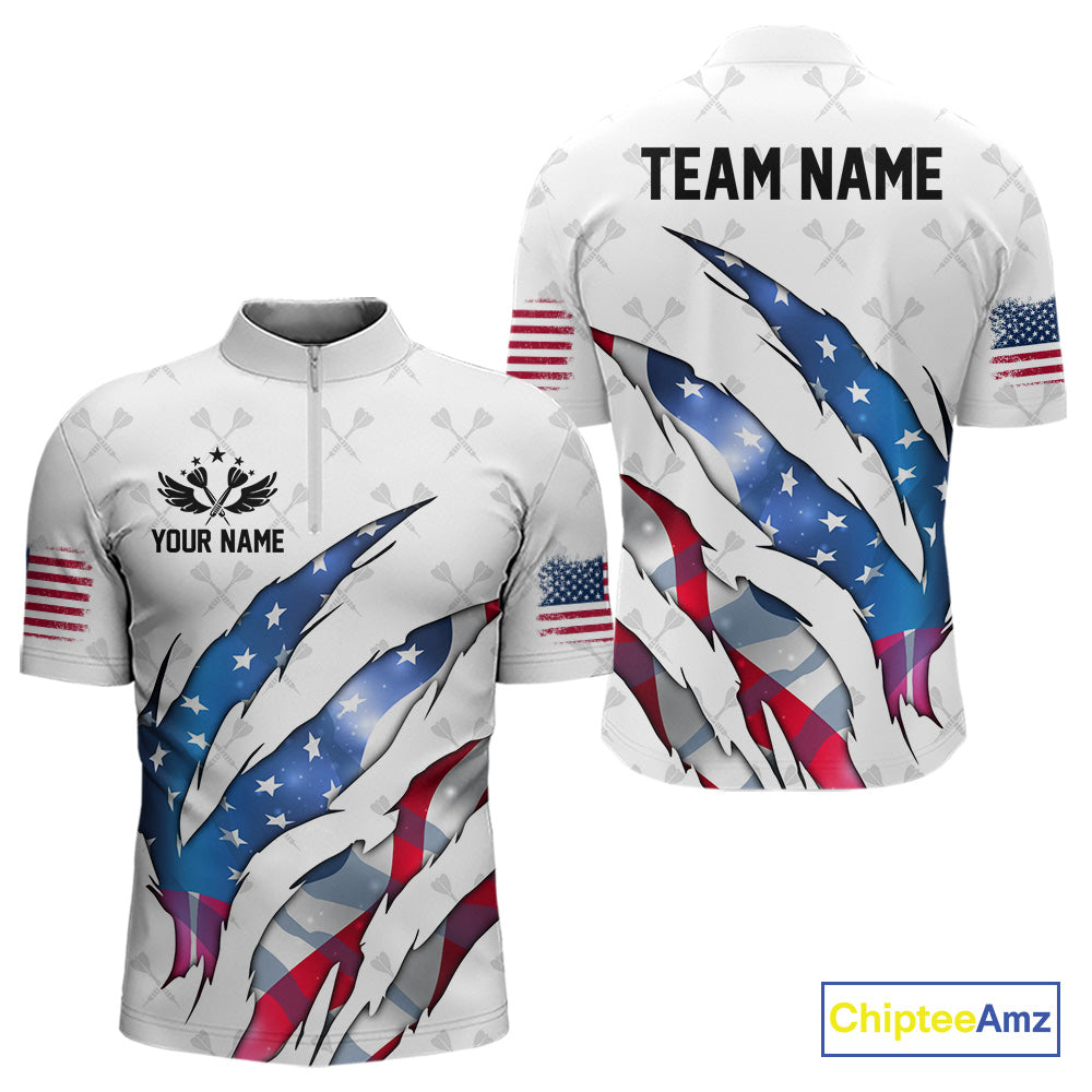 Personalized Glowing American Flag Patriotic Dart Shirt For Men, Darts Team Jerseys Polo & 1/4 Zip TDM4594