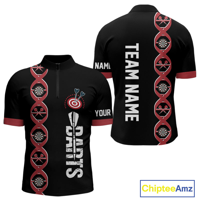Personalized DNA Darts Shirt For Men Custom Black And Red Funny Darts Jersey Team Polo & 1/4 Zip TDM4617