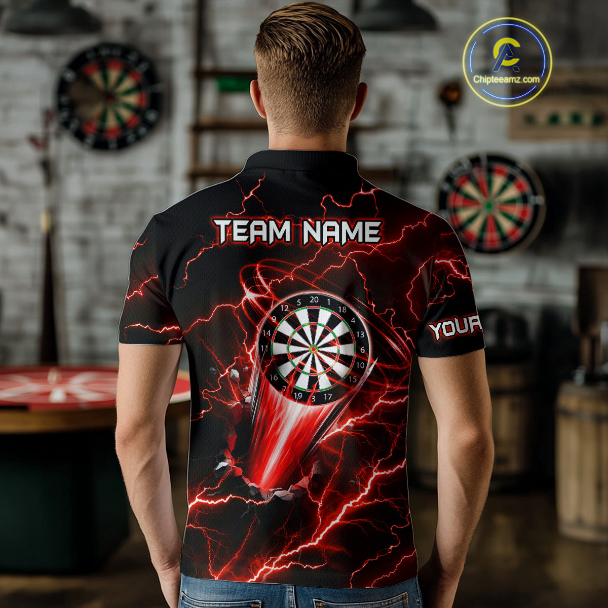 Personalized Red Darts Skull Shirt For Men Custom Polo & 1/4 Zip Lightning Thunder Darts Jersey TDM4621