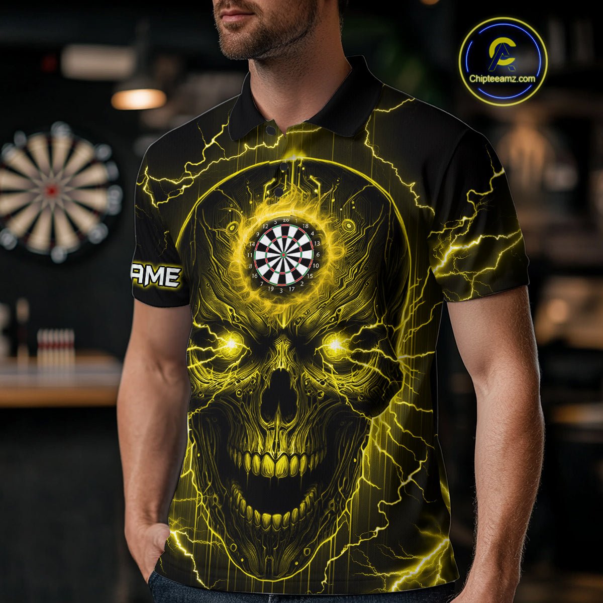 Personalized Yellow Darts Skull Shirt For Men Custom Polo & 1/4 Zip Lightning Thunder Darts Jersey TDM4622