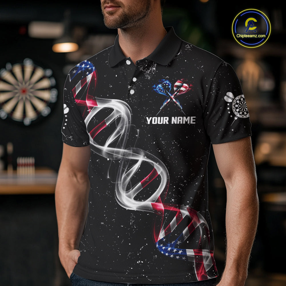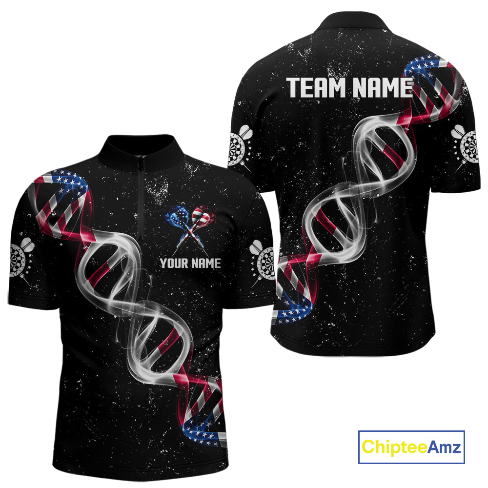 Custom American Flag Smoke DNA Darts Jersey Polo & 1/4 Zip For Men, Patriotic Darts Team Jersey TDM4626
