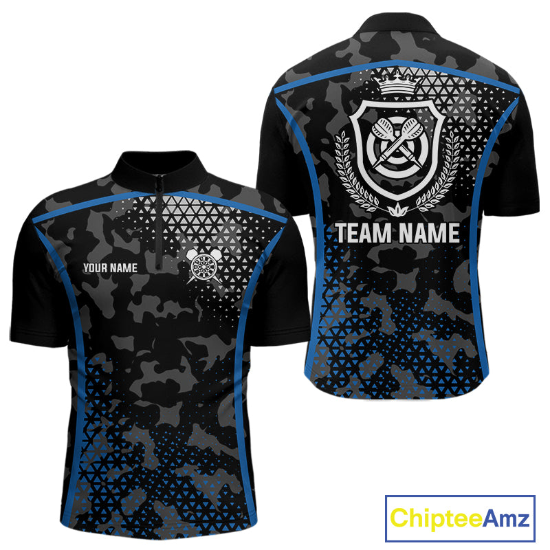 Black And Blue Camo Dart Shirt With Pocket Option For Men Custom Dart Jersey TDM4651
