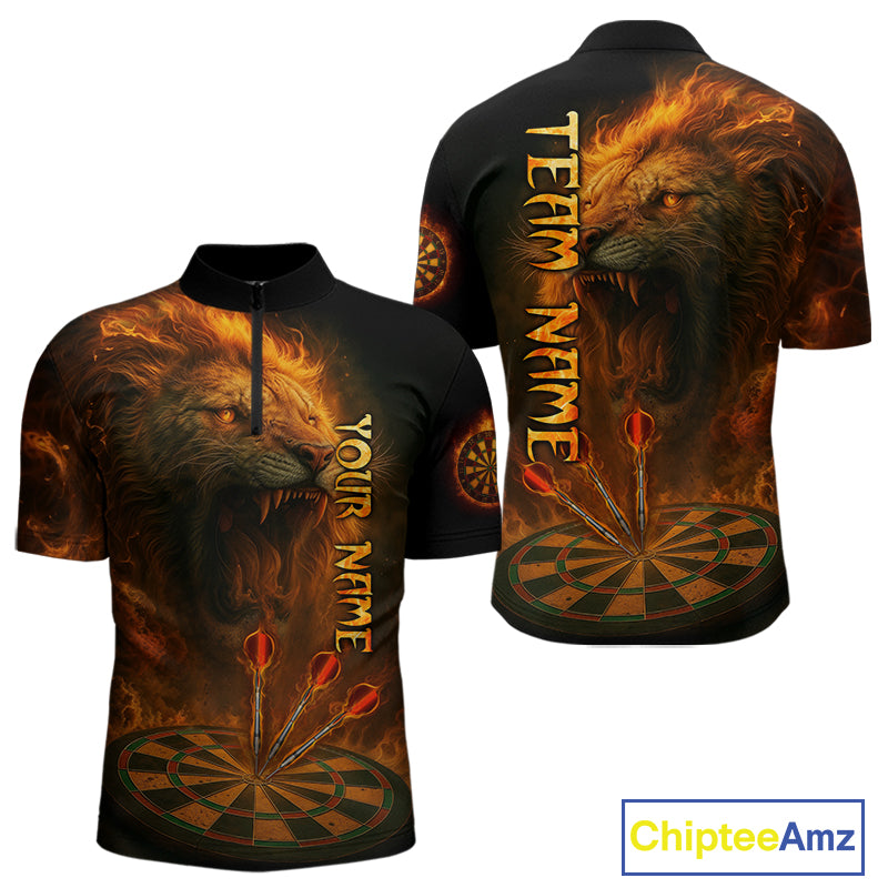 Personalized Fire Flame Lion Darts Shirt For Men Custom Orange Darts League Jersey Polo & 1/4 Zip TDM4678