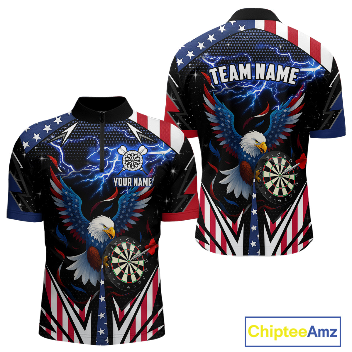 Custom American Flag Eagle Lightning Darts Shirt For Men, Patriotic Darts Jersey Polo & 1/4 Zip TDM4706