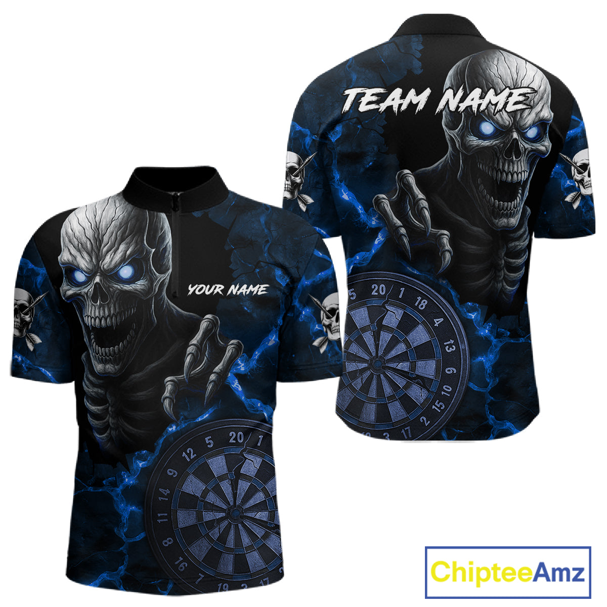 Personalized Skull Darts Polo & Quarter Zip For Men Custom Fire Darts League Team Jersey |Blue TDM4719