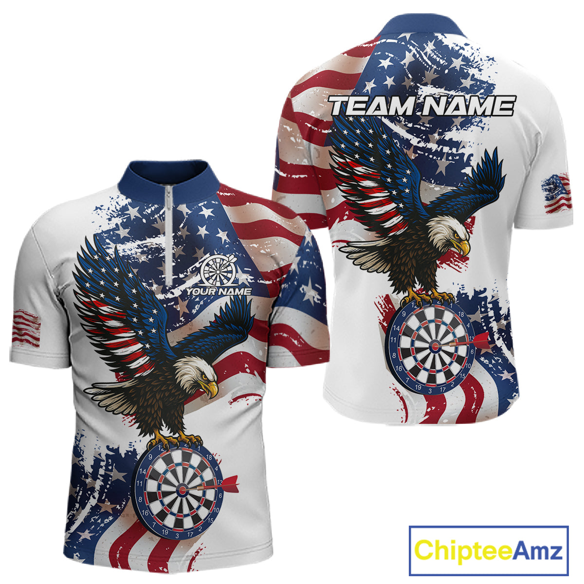 Personalized Grunge American Flag Eagle Darts Shirt For Men Custom Patriotic Darts Team Jersey TDM4756