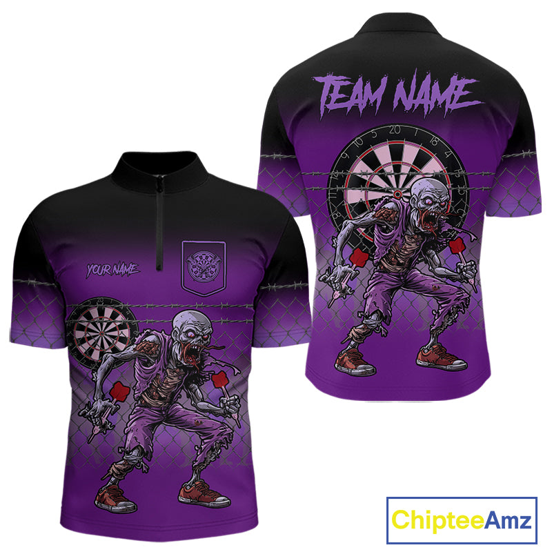 Custom Zombie Purple Dart Shirt With Pocket Option For Men, Dart Team Jerseys TDM4772