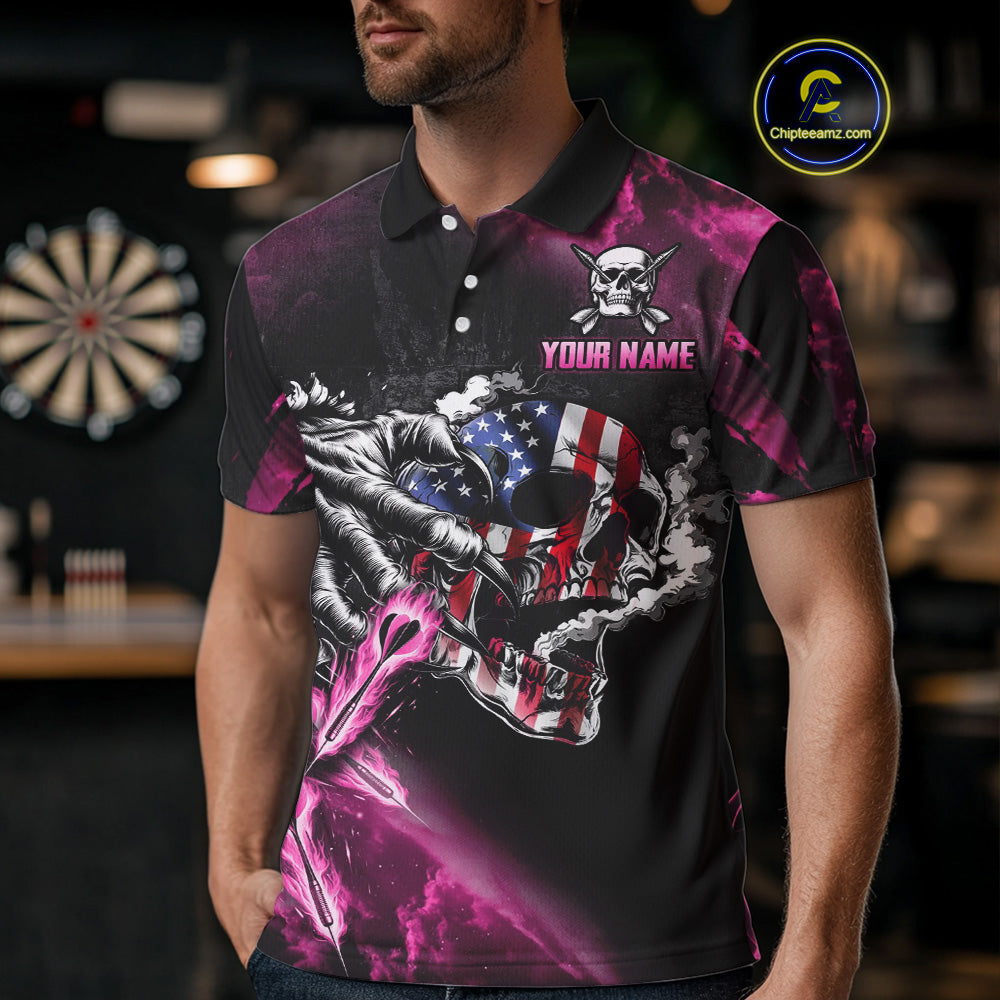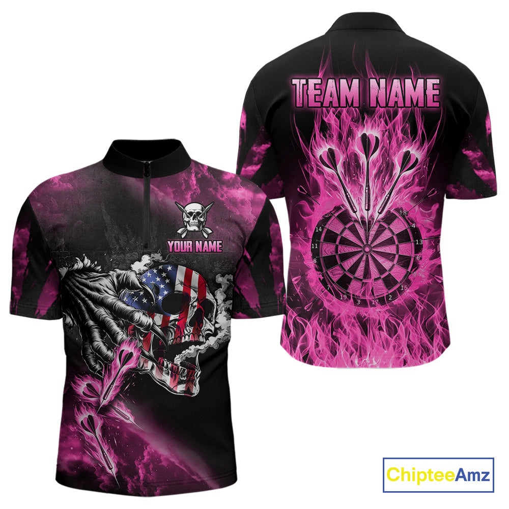 Fire Flame Darts Board American Flag Skull Dart Shirts For Men Custom Darts Team Jerseys |Pink TDM4774
