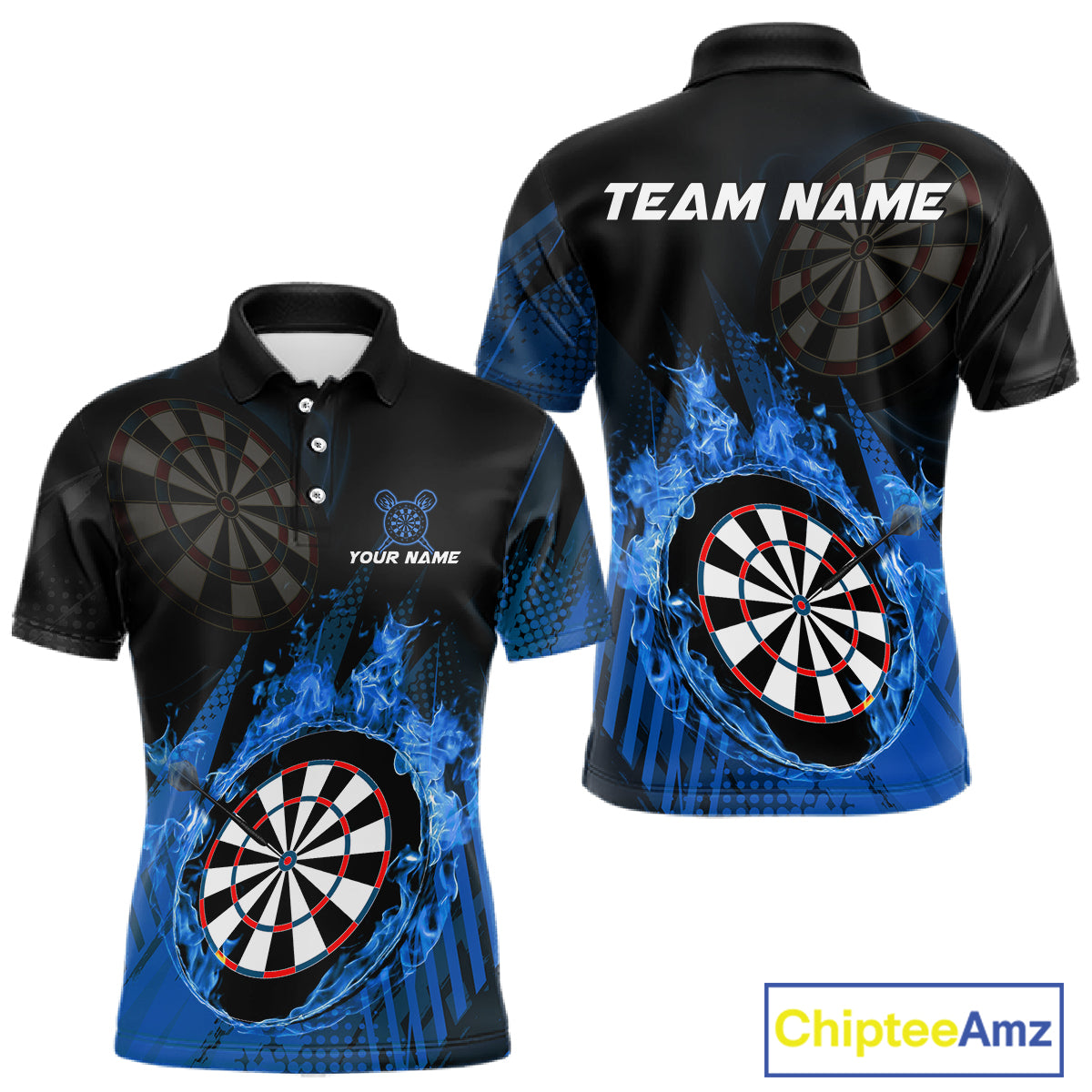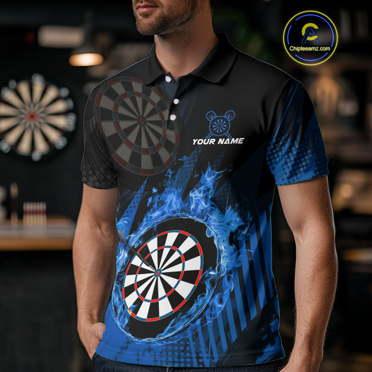 Blue Dartboard Fire Flame Darts Shirt For Men Custom Darts Jersey, Dart Team Shirt Polo & 1/4 Zip TDM4800