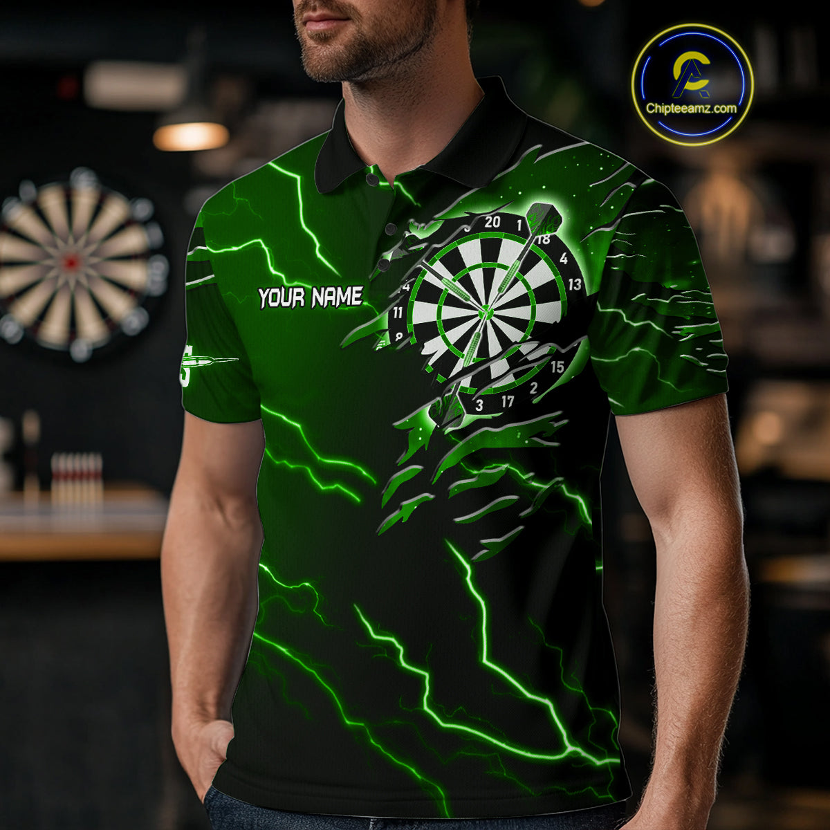 Personalized Thunder Lightning Eagle Green Darts Shirt Polo & Quarter Zip For Men Dart Team Jersey TDM4834