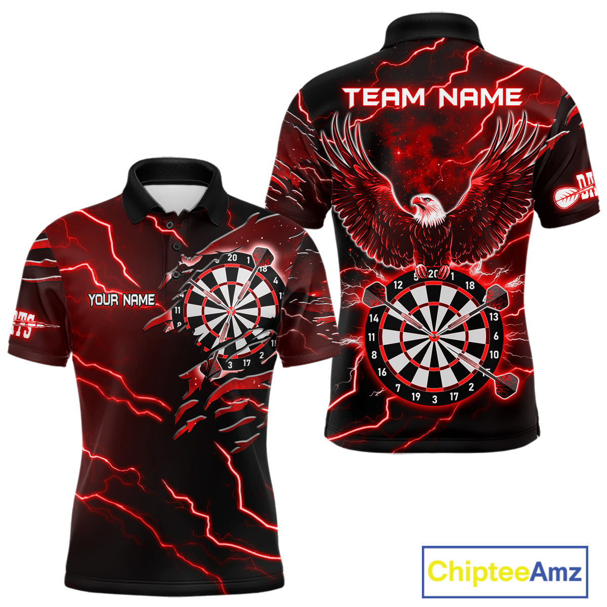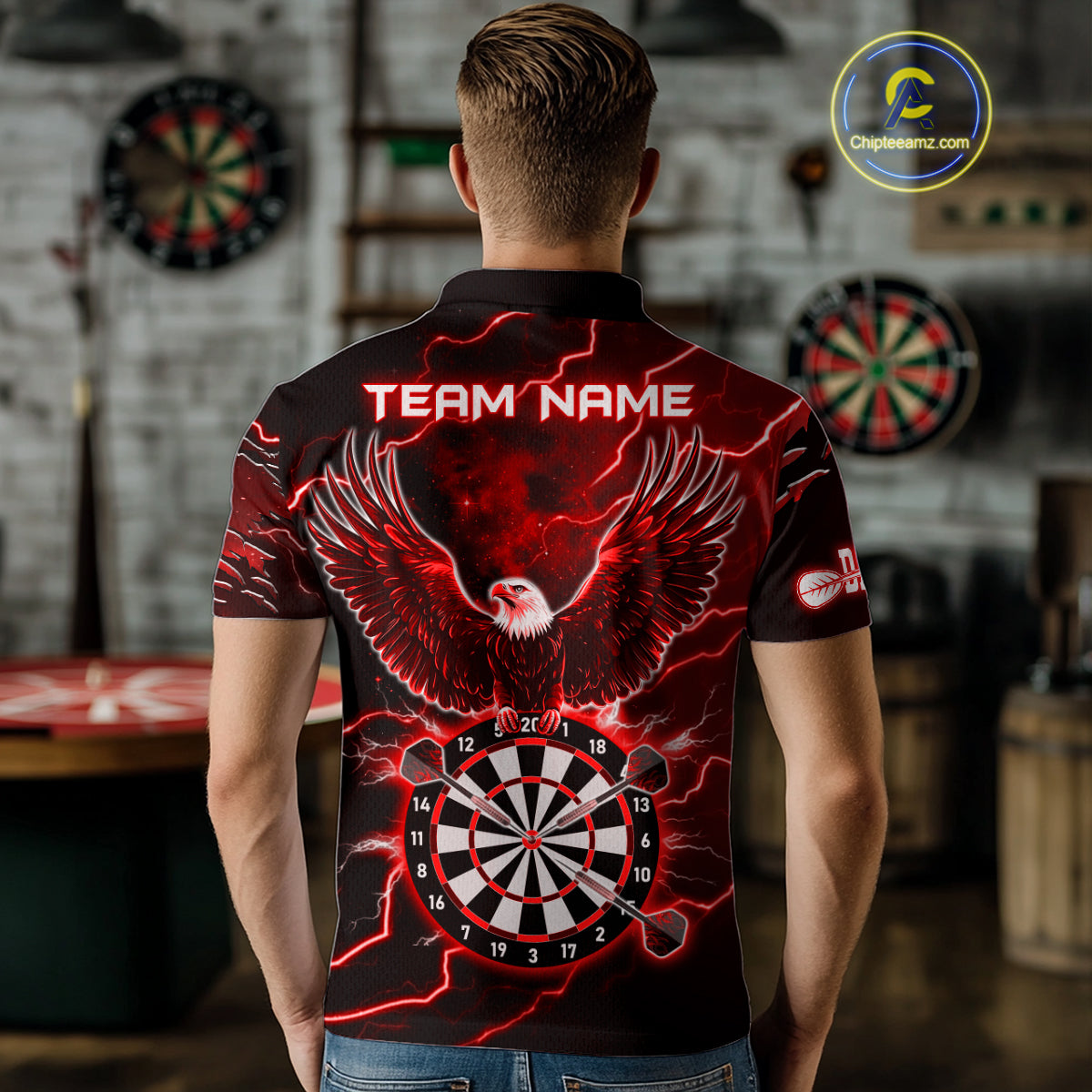 Personalized Thunder Lightning Eagle Red Darts Shirt Polo & Quarter Zip For Men Dart Team Jersey TDM4835