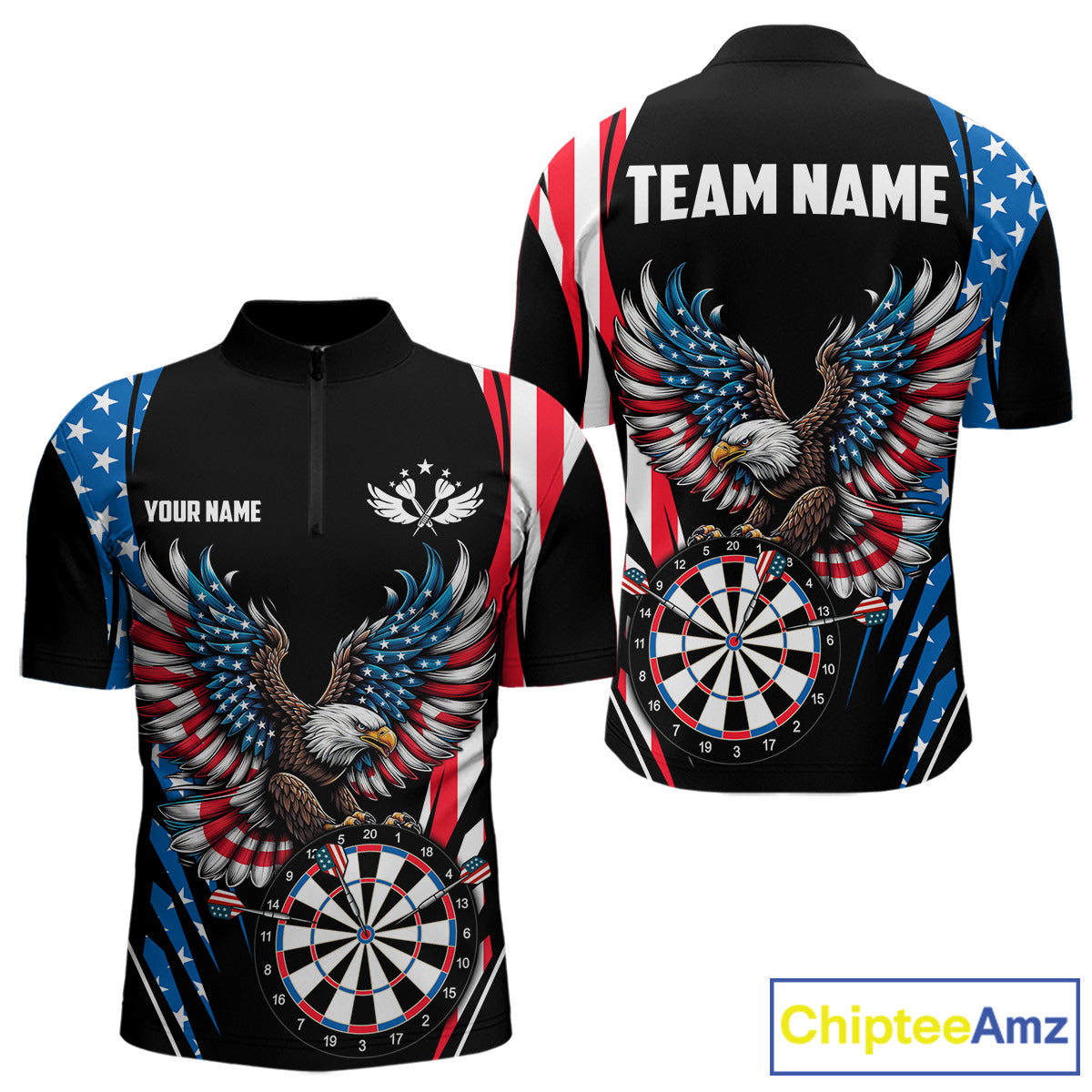Personalized American Flag Eagle Patriotic Darts Shirt For Men Custom Darts Jersey Polo & 1/4 Zip TDM4859