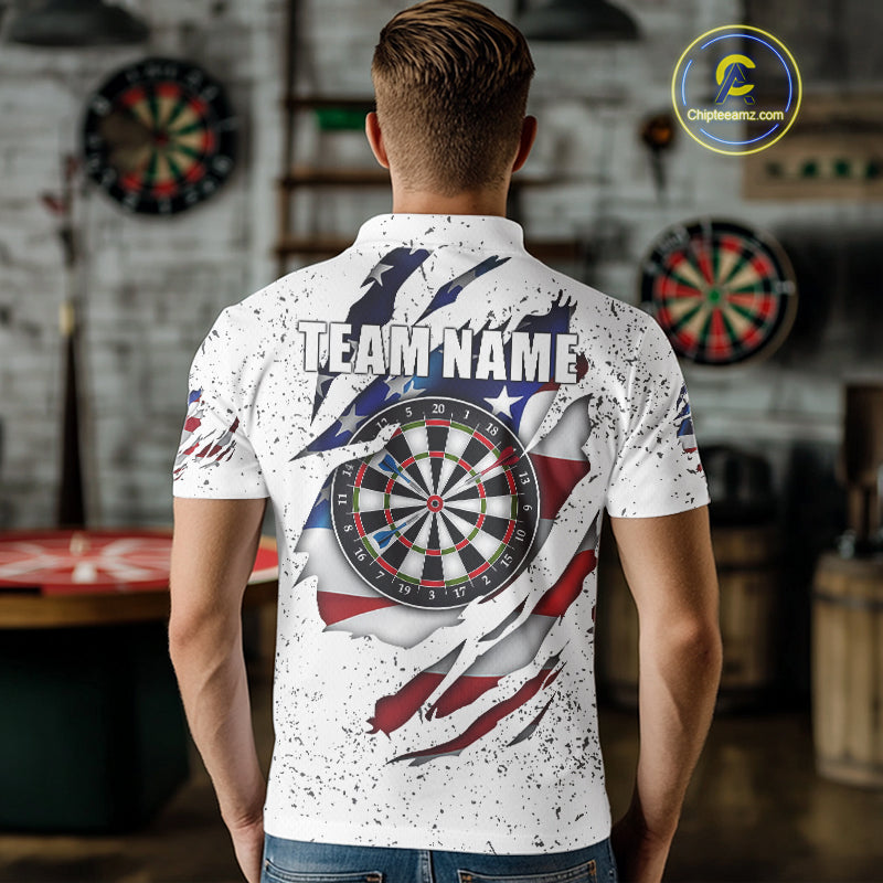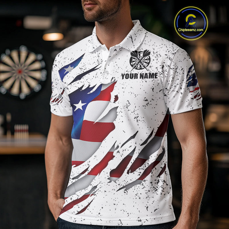 Patriotic Grunge US Flag Darts Shirt With Pocket For Men Custom Darts Jersey TDM3211