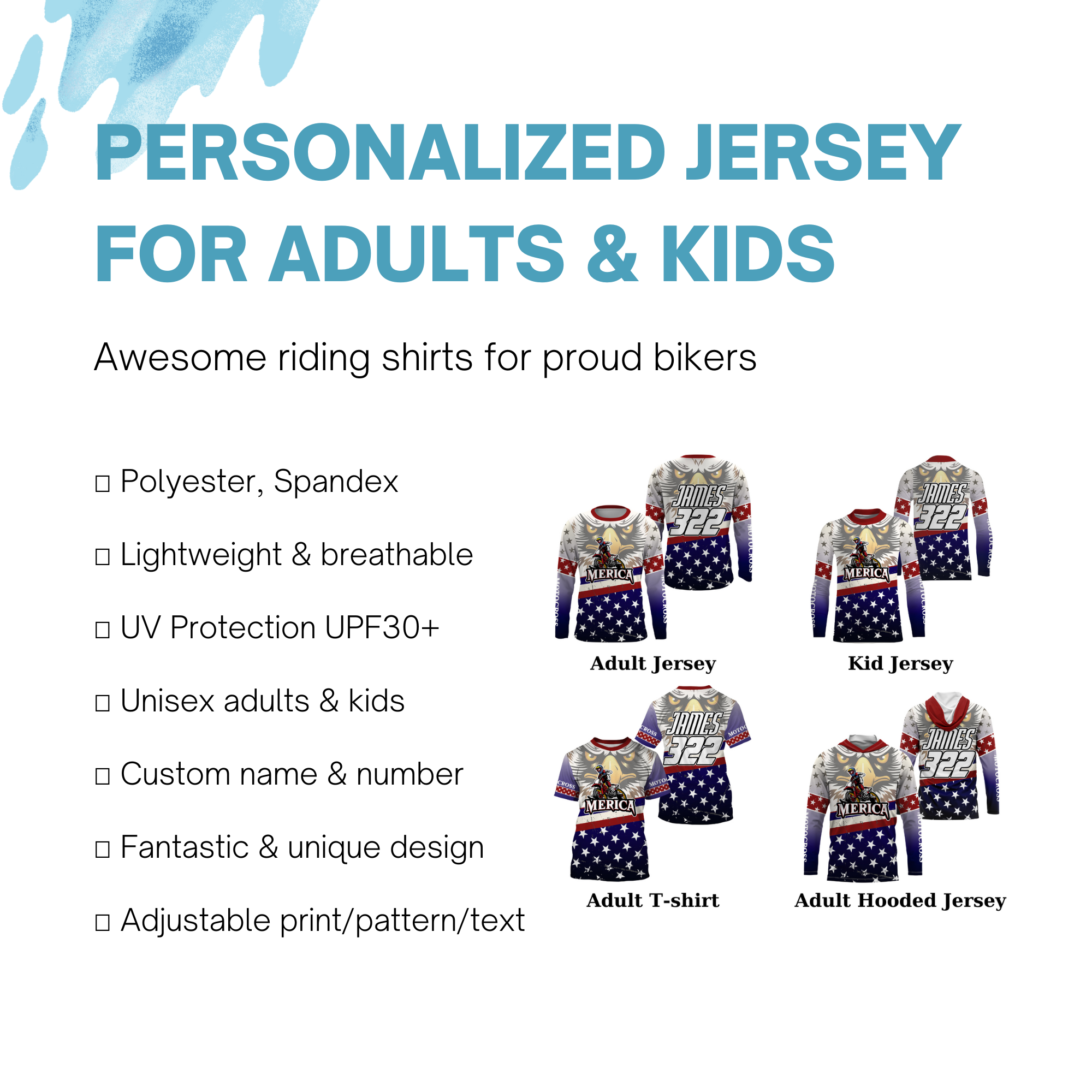 American Eagle Motocross Jersey UPF30+ Personalized Patriotic MX Off-Road Adult&Kid Dirt Bike Jersey| NMS744