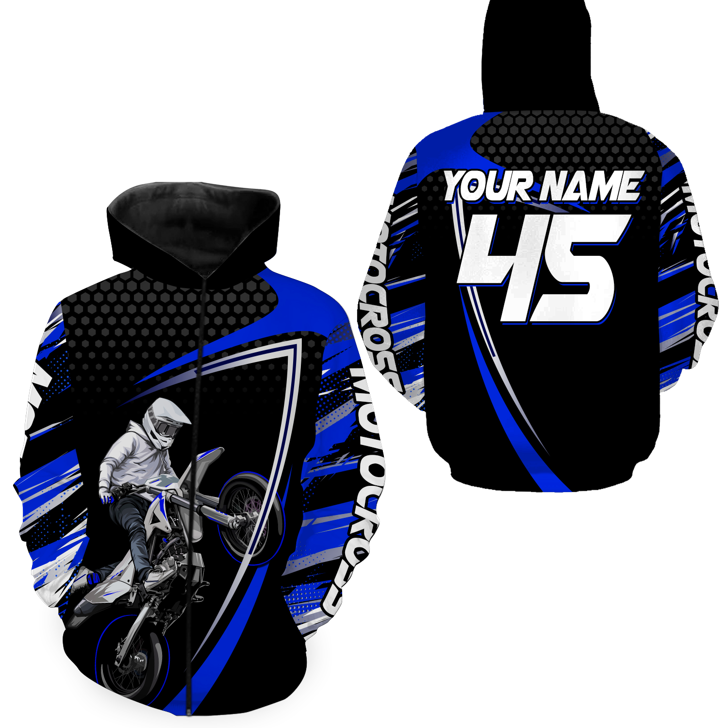 Blue Motocross Racing Hoodie Jersey For Men Women Motorcycle Dirt Bike Hoodie Zip MH124