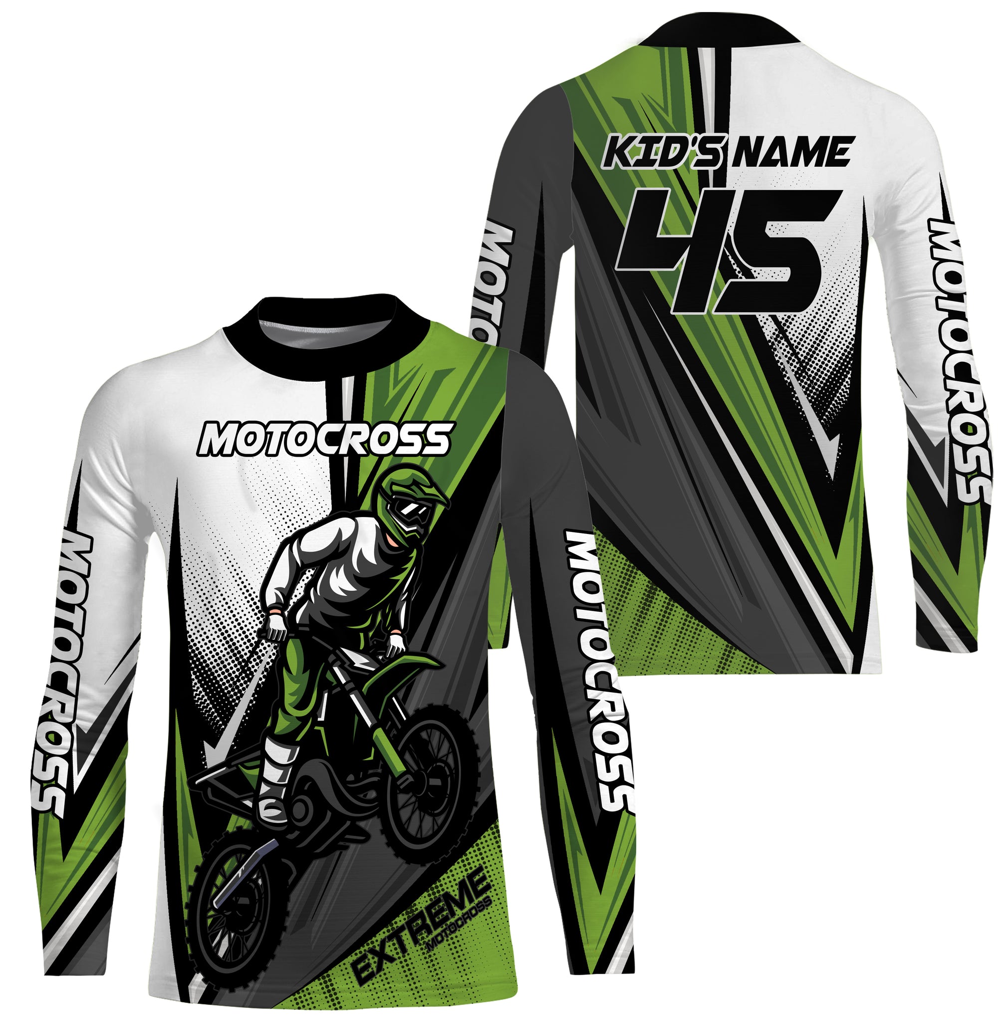 Personalized Motocross Jersey UPF 30+, Dirt Bike Motorcycle Off-Road Racing Long Sleeves - Green| NMS268