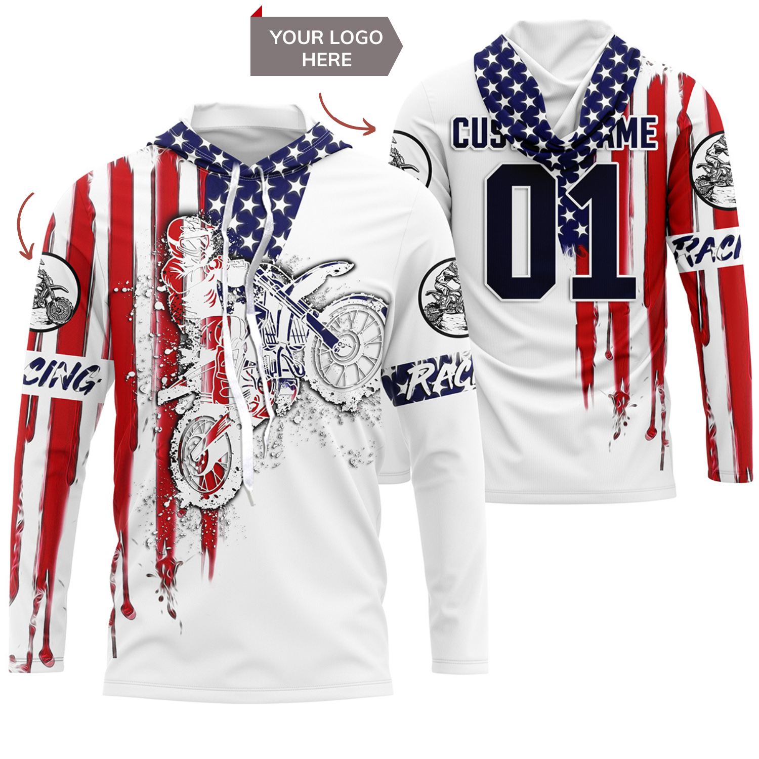 Custom logo dirtbike racing jersey UPF30+ adult kid Patriotic motocross off-road American riders NMS1012