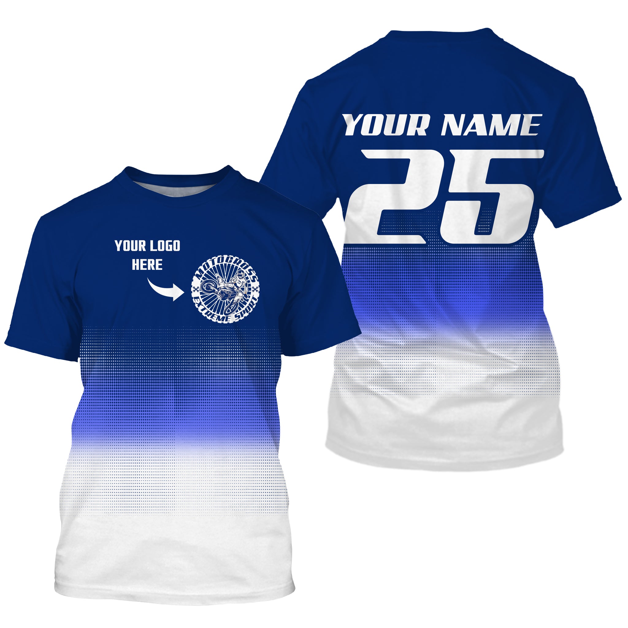 Custom logo motorcycle racing jersey UPF30+ adult kid blue motocross off-Road dirtbike riders NMS1019