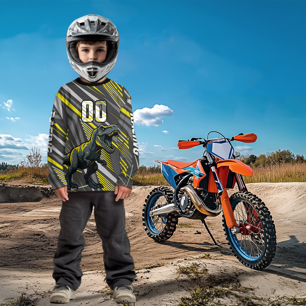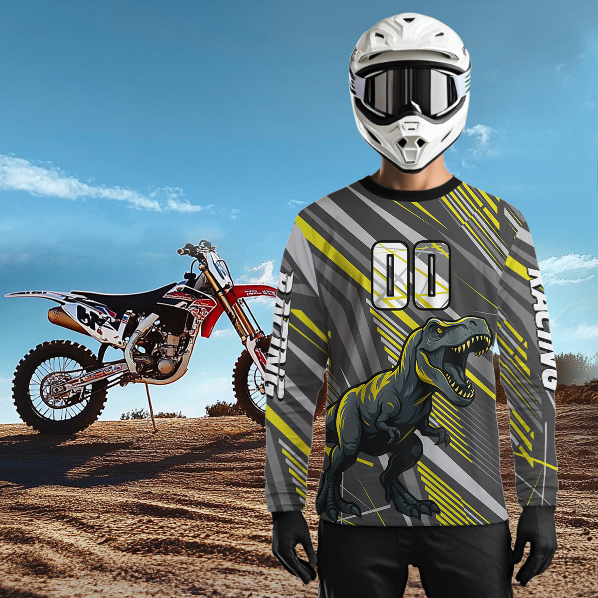 Dinosaur Motocross Jersey Yellow&Grey Dirt Bike Jersey for Men Kid Women Upf30+ XM349