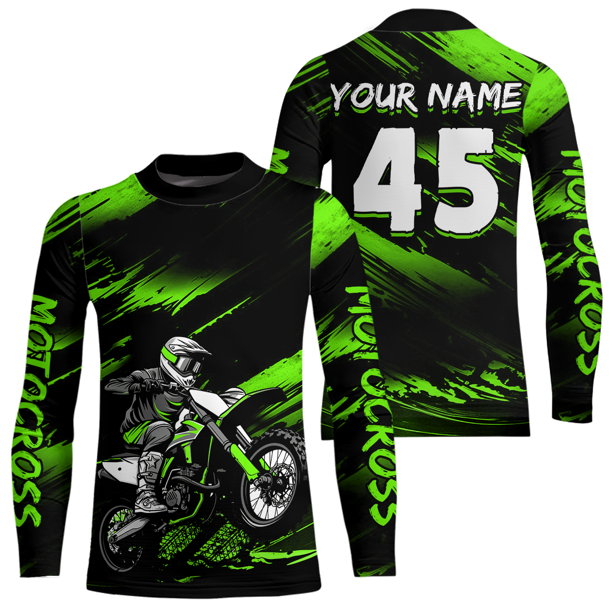 Green Motocross Shirts Personalized Racing Jersey Dirt Bike Jersey Kid Men Women UPF30+ DNT15
