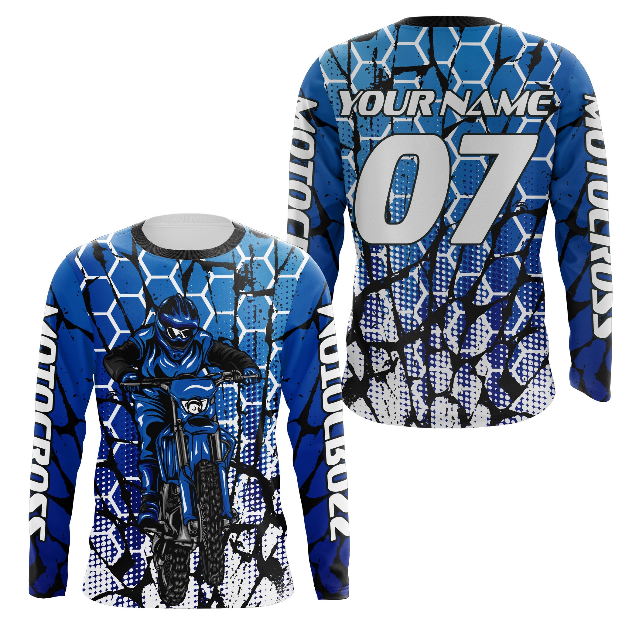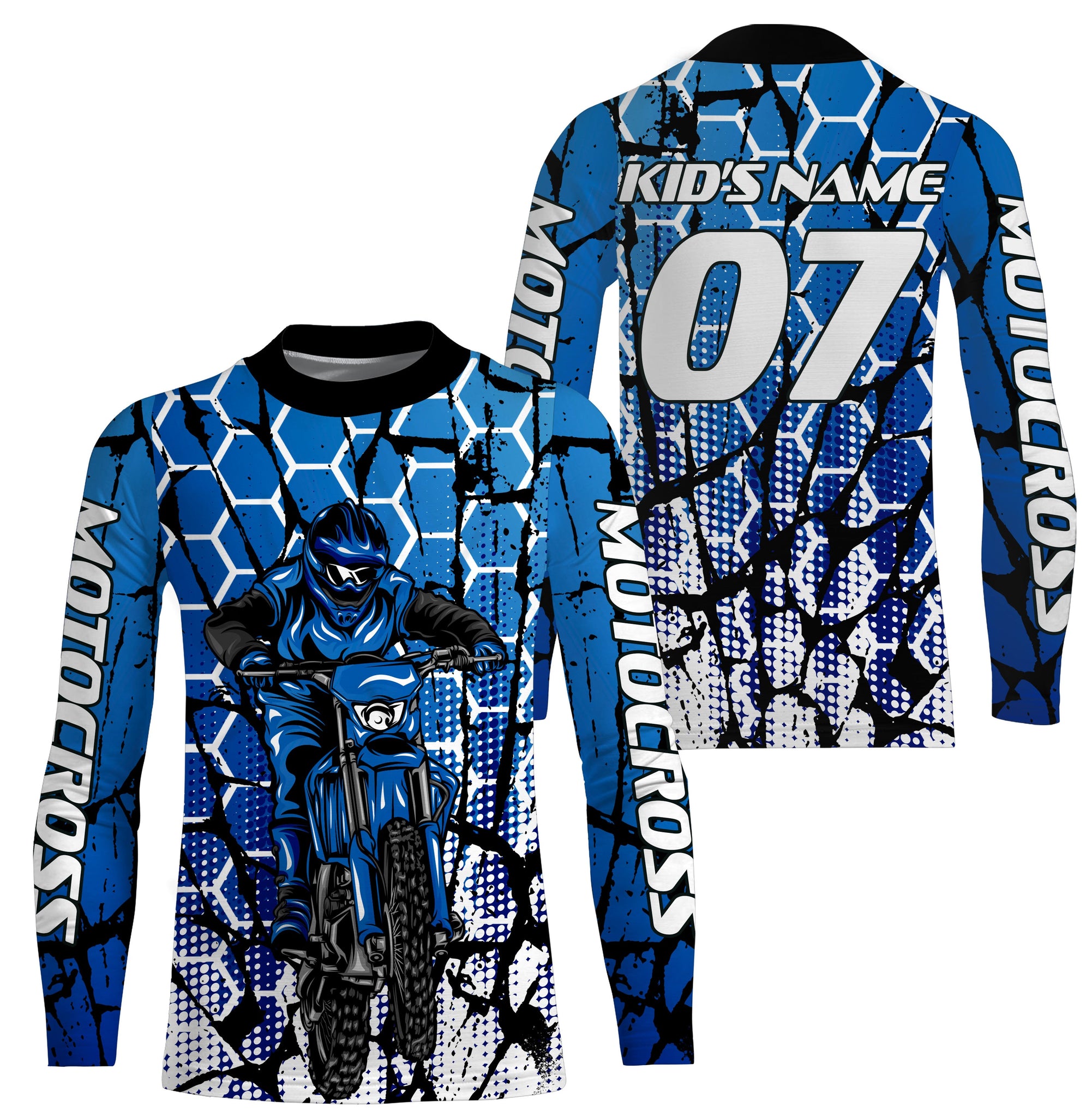 Motocross Racing Personalized Jersey UPF30+ Adults & Kid Dirt Bike Motorcycle Off-road MX Riders Blue| NMS681