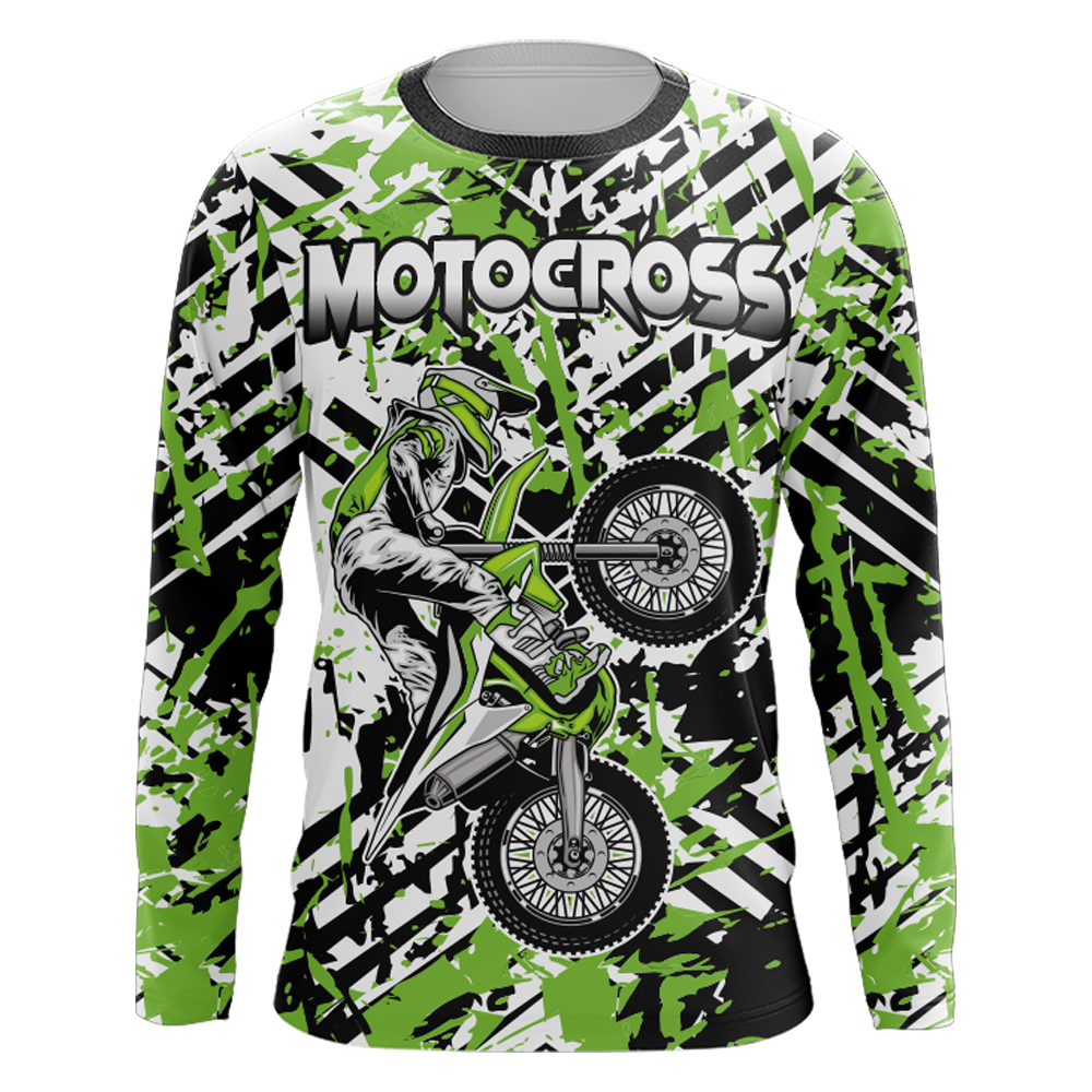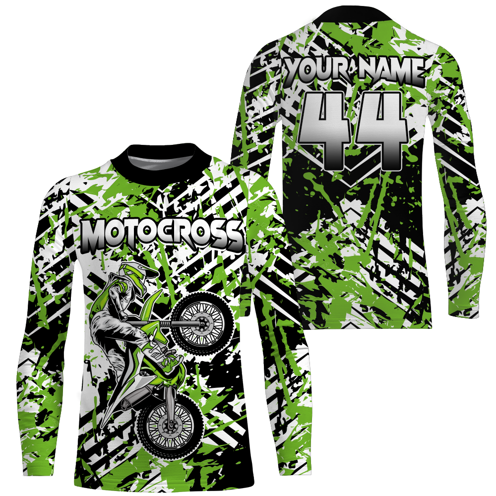 Motocross Racing Personalized Jersey Youth UPF30+ Green Dirt Bike Motorcycle Off-Road XM137