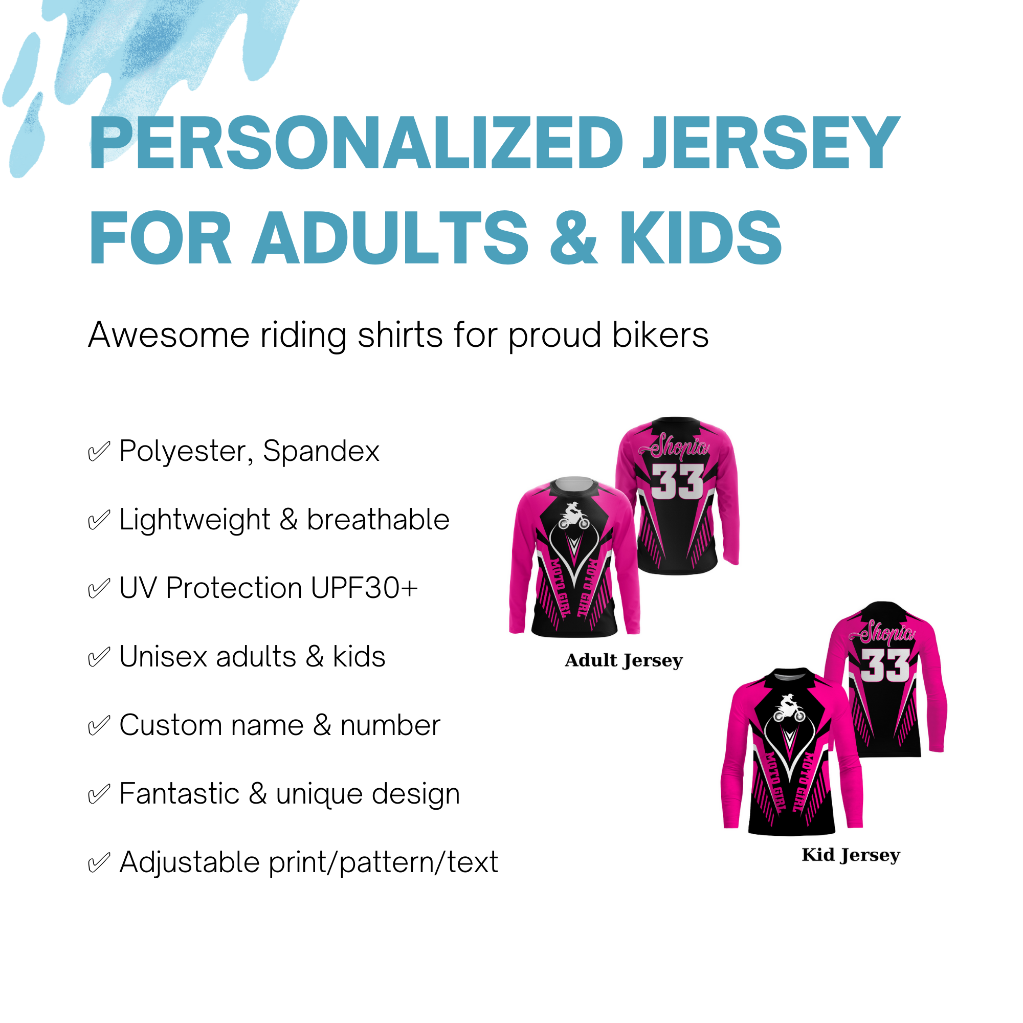 MotoGirl Custom Motocross Jersey UPF30+ Adult&Kid Pink Dirt Bike Racing Women MX Motorcycle| NMS850