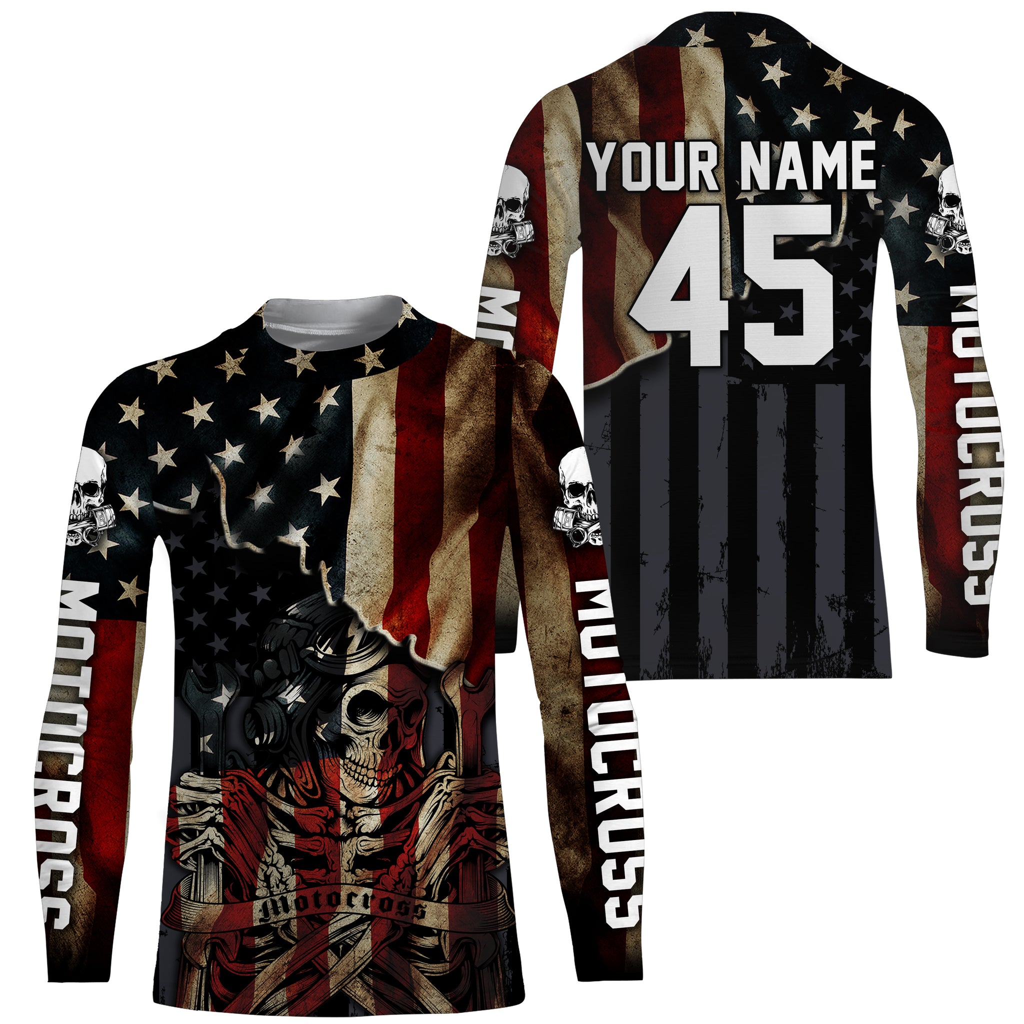 Patriotic Motocross jersey custom name number UPF30+ American flag adult&kid MX racing motorcycle NMS958