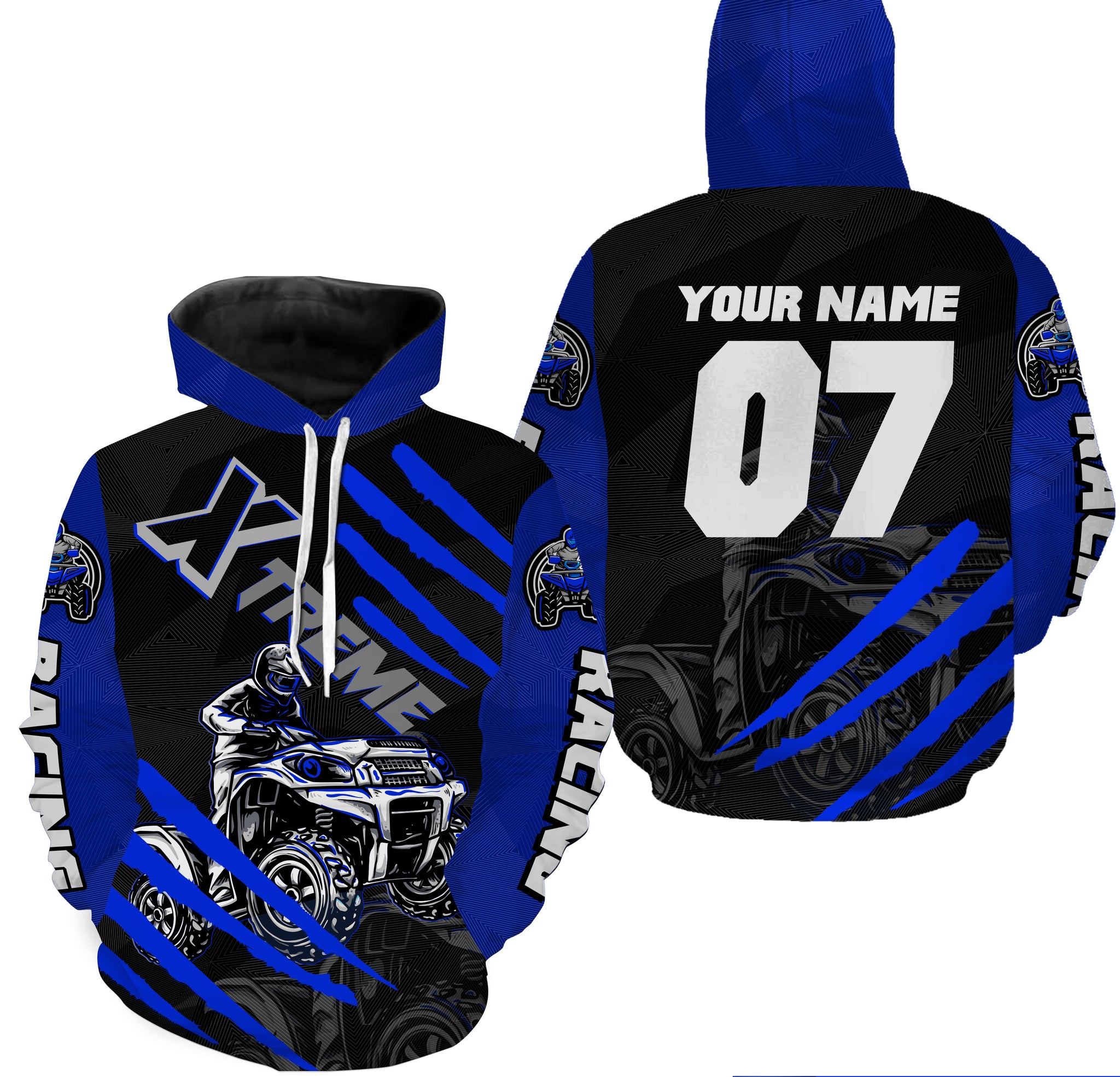 Personalized Blue ATV Quad Hoodie Men Women ATV Motocross Hooded Jersey Extreme Off-Road PDT916
