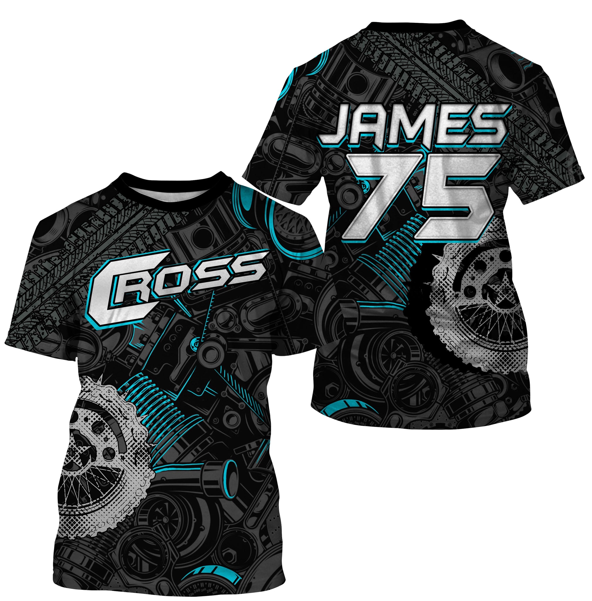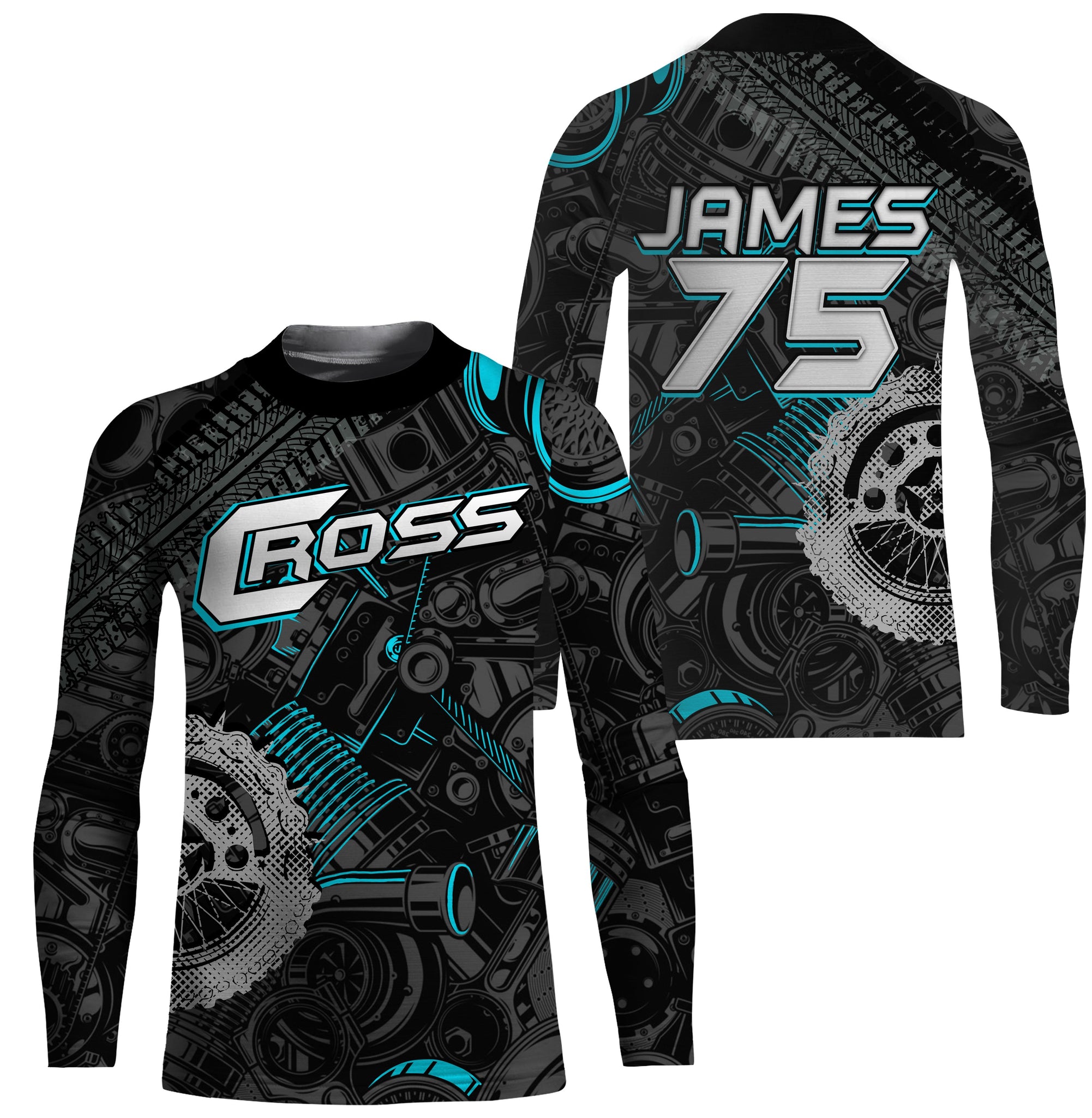 Personalized Camo Cross Jersey UPF30+ UV Protect, Motocross Supercross Racing Motorcycle Riders - Blue| NMS736