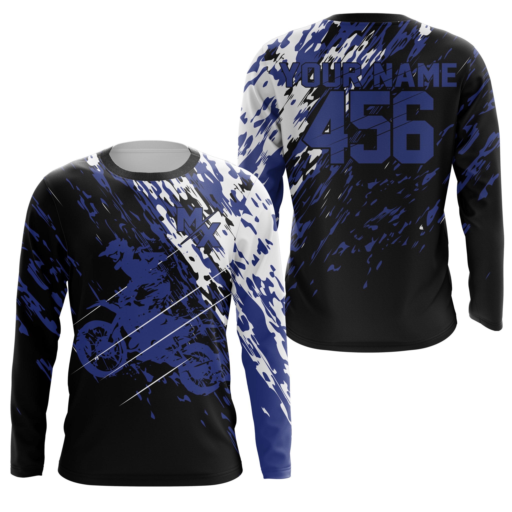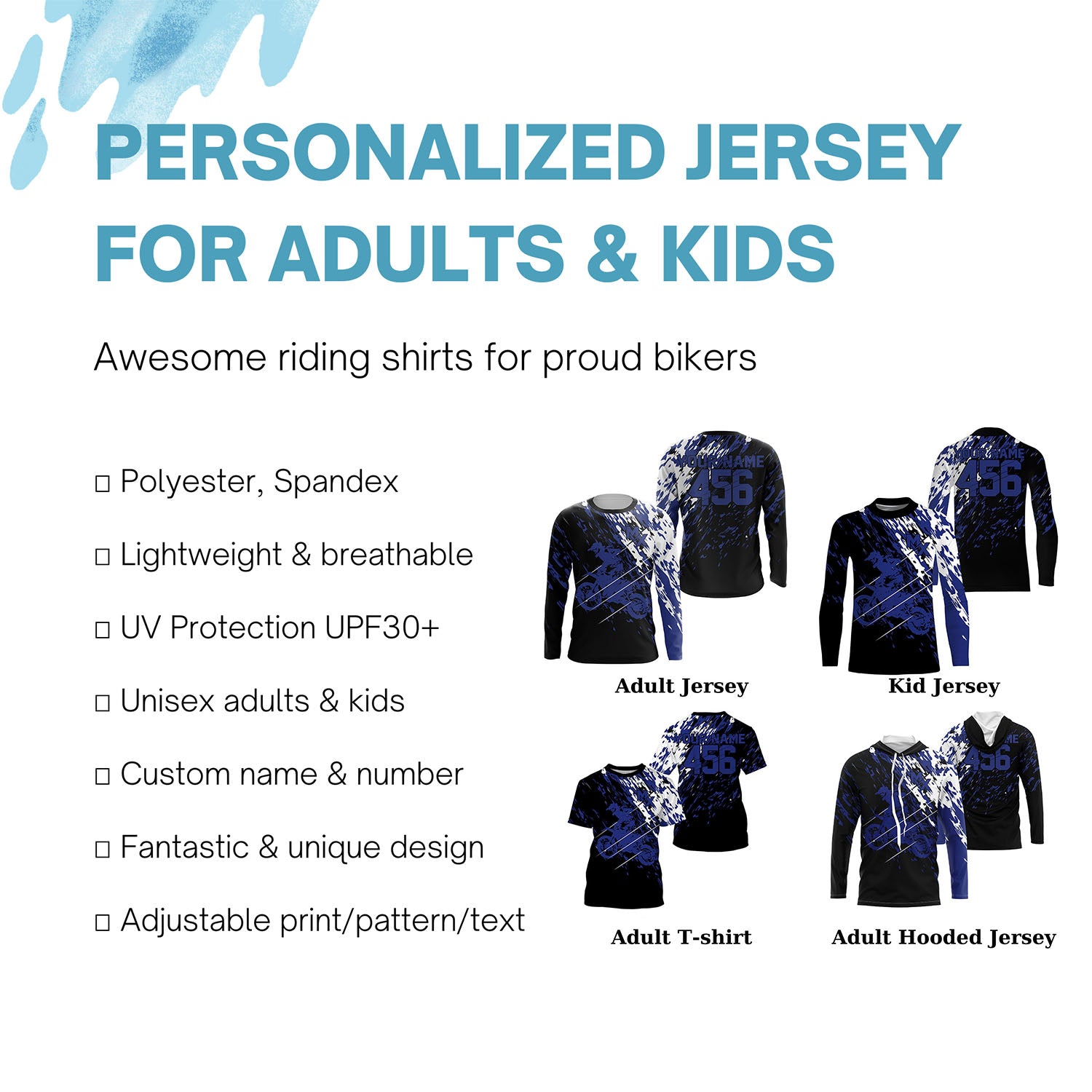 Personalized dirt bike jersey adult&kid UPF30+ Motocross MX racing off-road motorcycle - Blue| NMS909