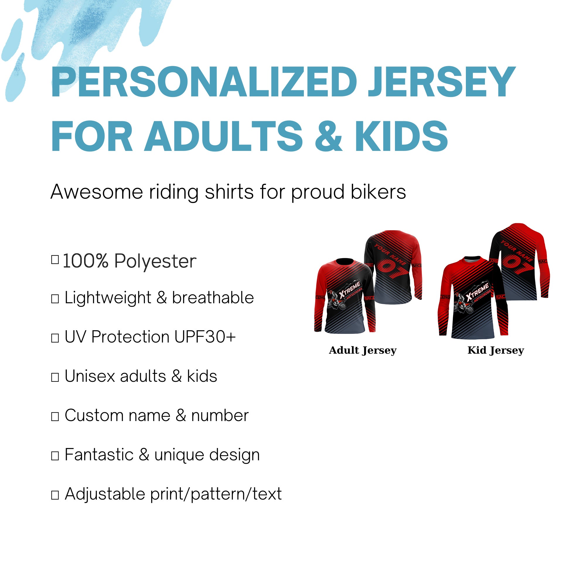 - PERSONALIZED RIDING JERSEY: This super cool shirt is exactly what all bikers are looking for. Add your name/number to make it a unique one that bears your own imprints.