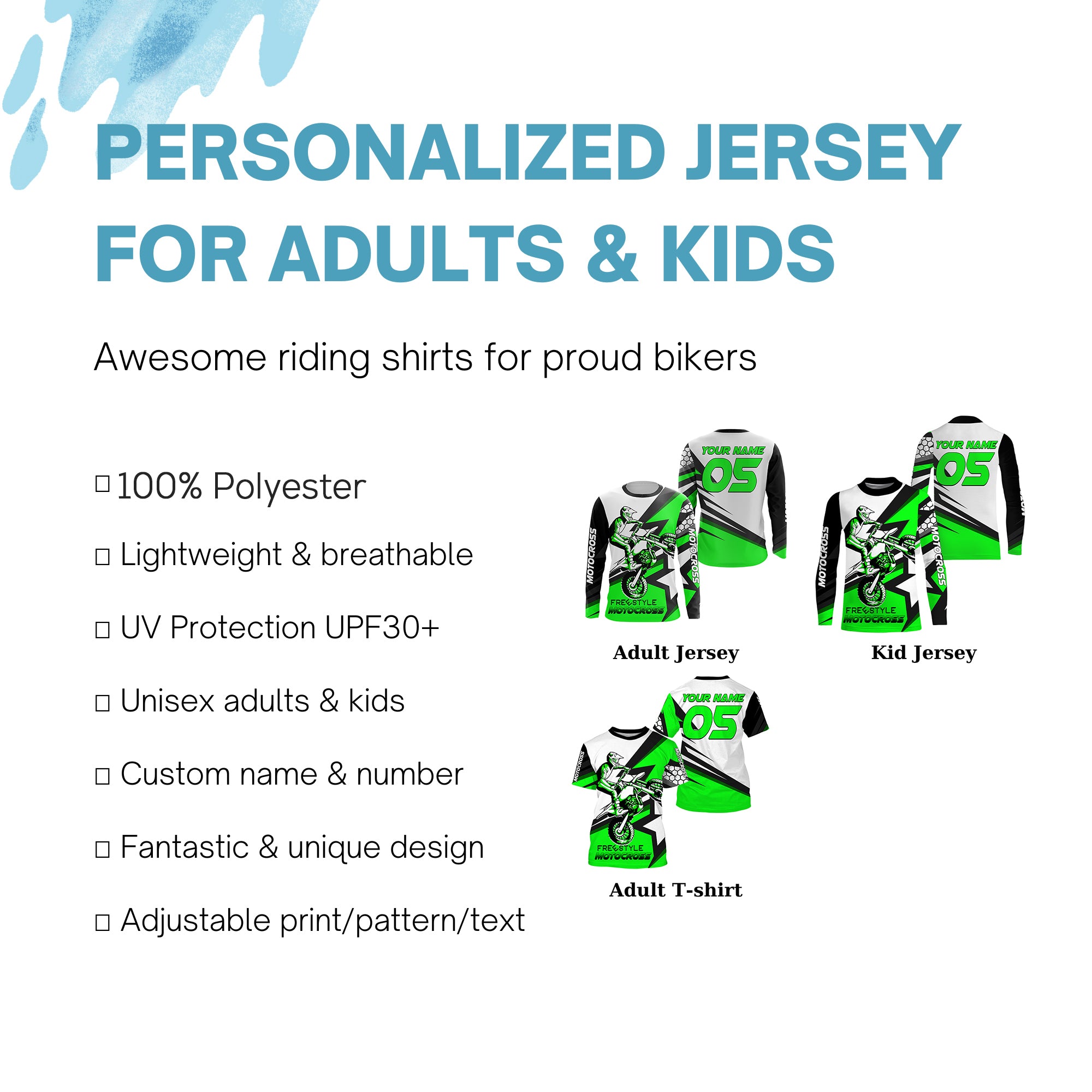 - PERSONALIZED RIDING JERSEY: This super cool shirt is exactly what all bikers are looking for. Add your name/number to make it a unique one that bears your own imprints.