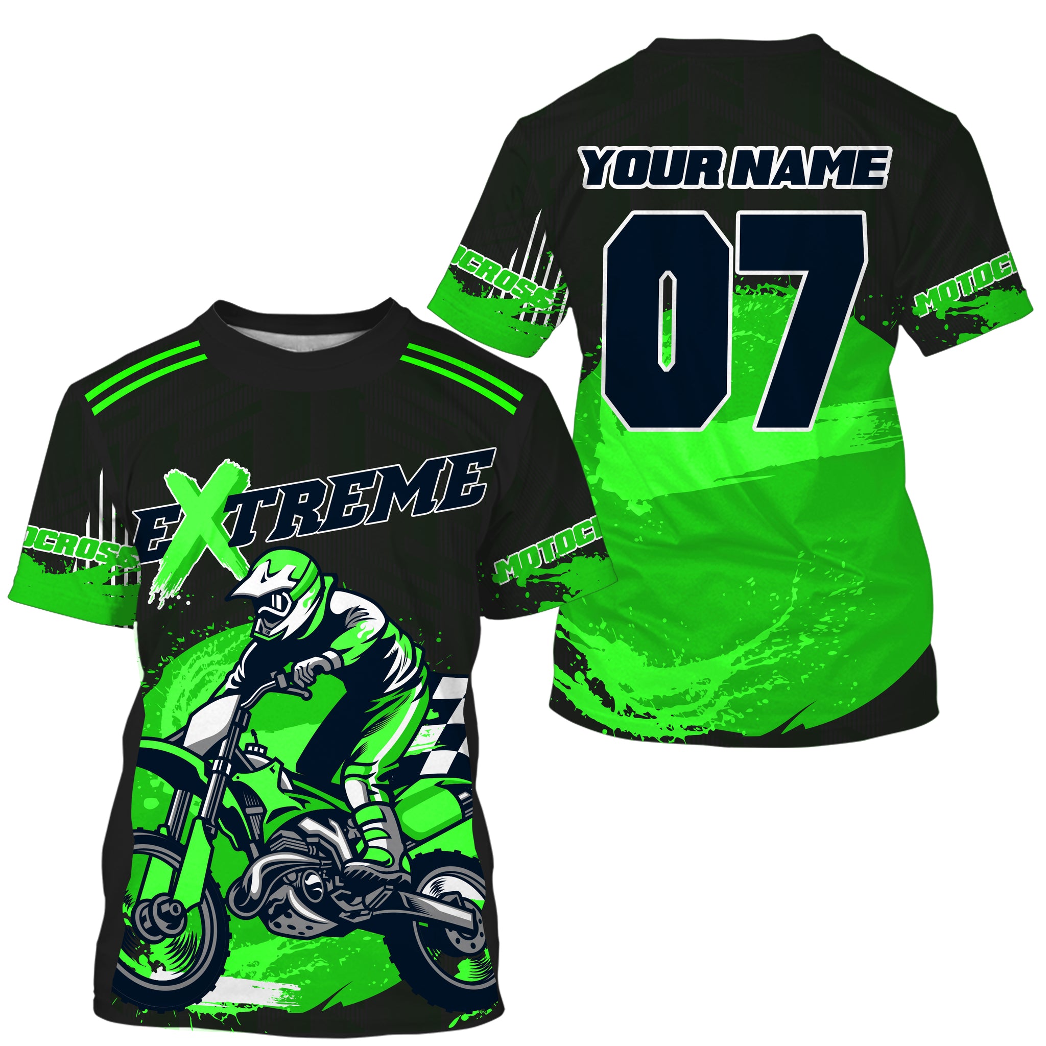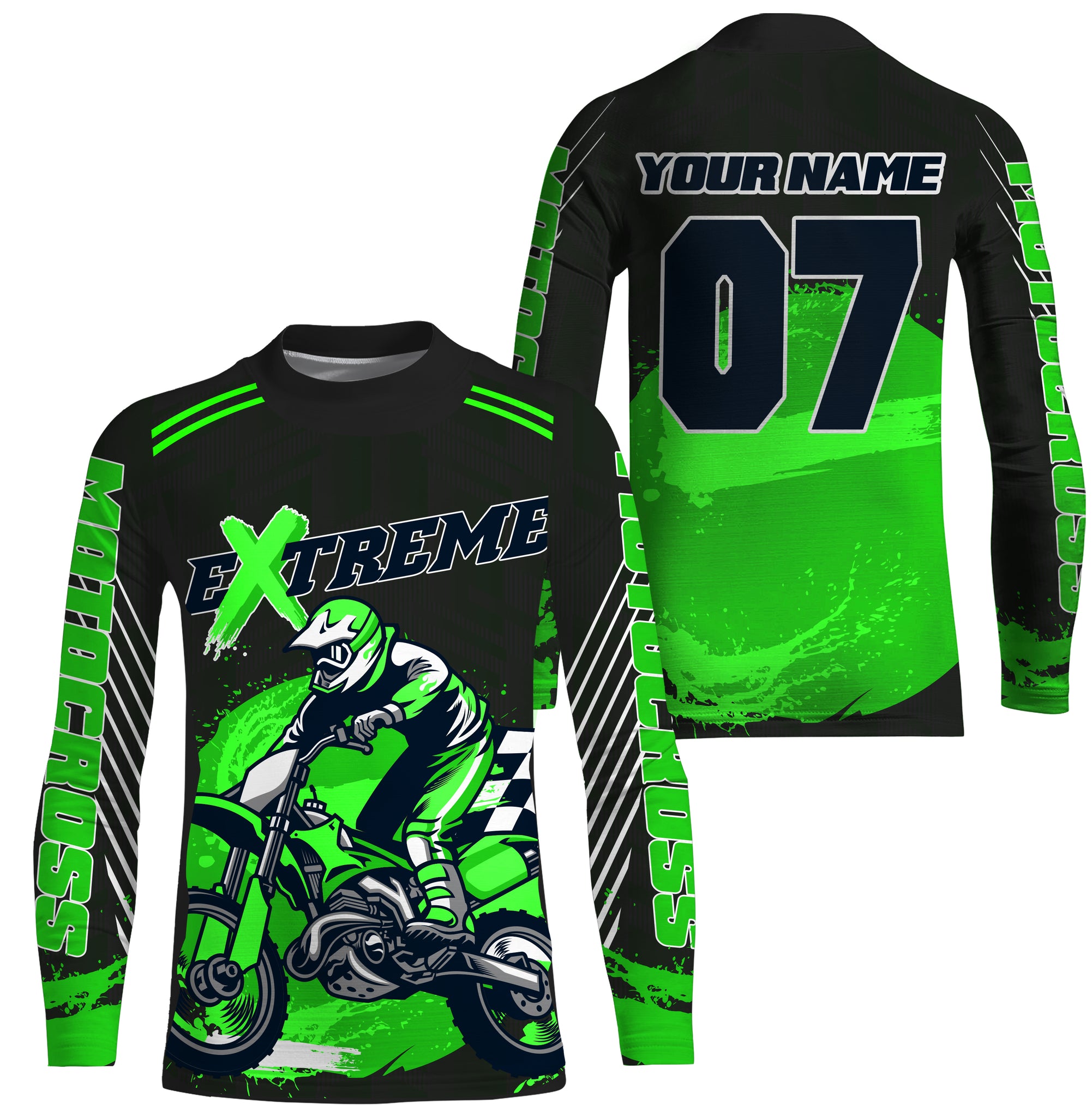 Personalized green UPF30+ Motocross riding jersey for kid men women racing off-Road motorcycle PDT11