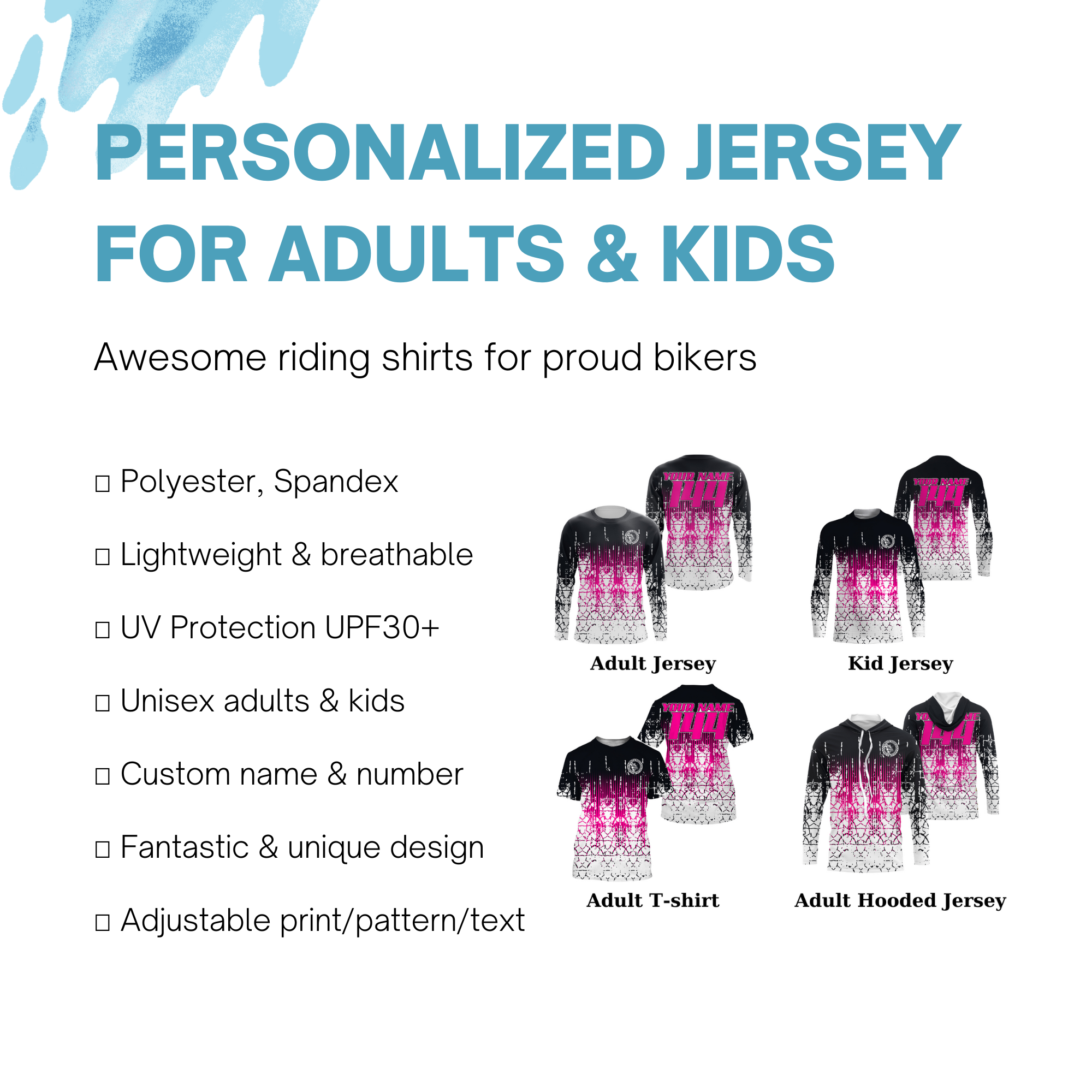 Personalized Motocross Jersey UPF30+ MX Racing Off-Road Adult&Kid Riders Dirt Bike Jersey - Pink| NMS750