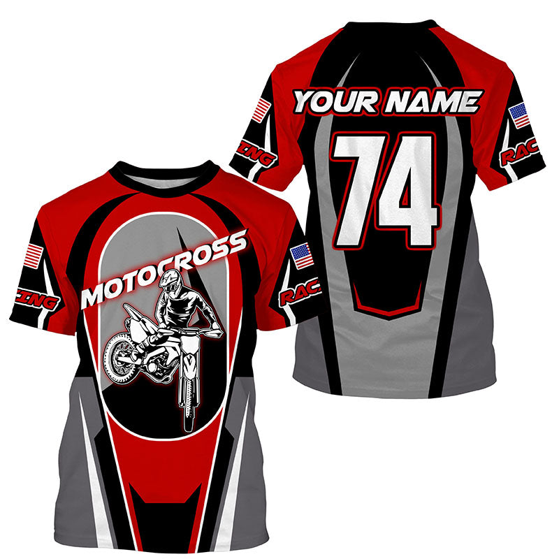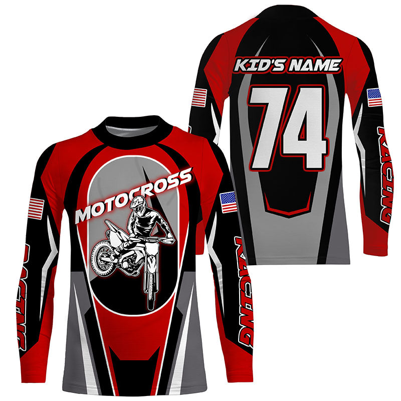 Personalized red Motocross off-road jersey kid adult UPF30+ Biker extreme MX long sleeves shirt PDT250