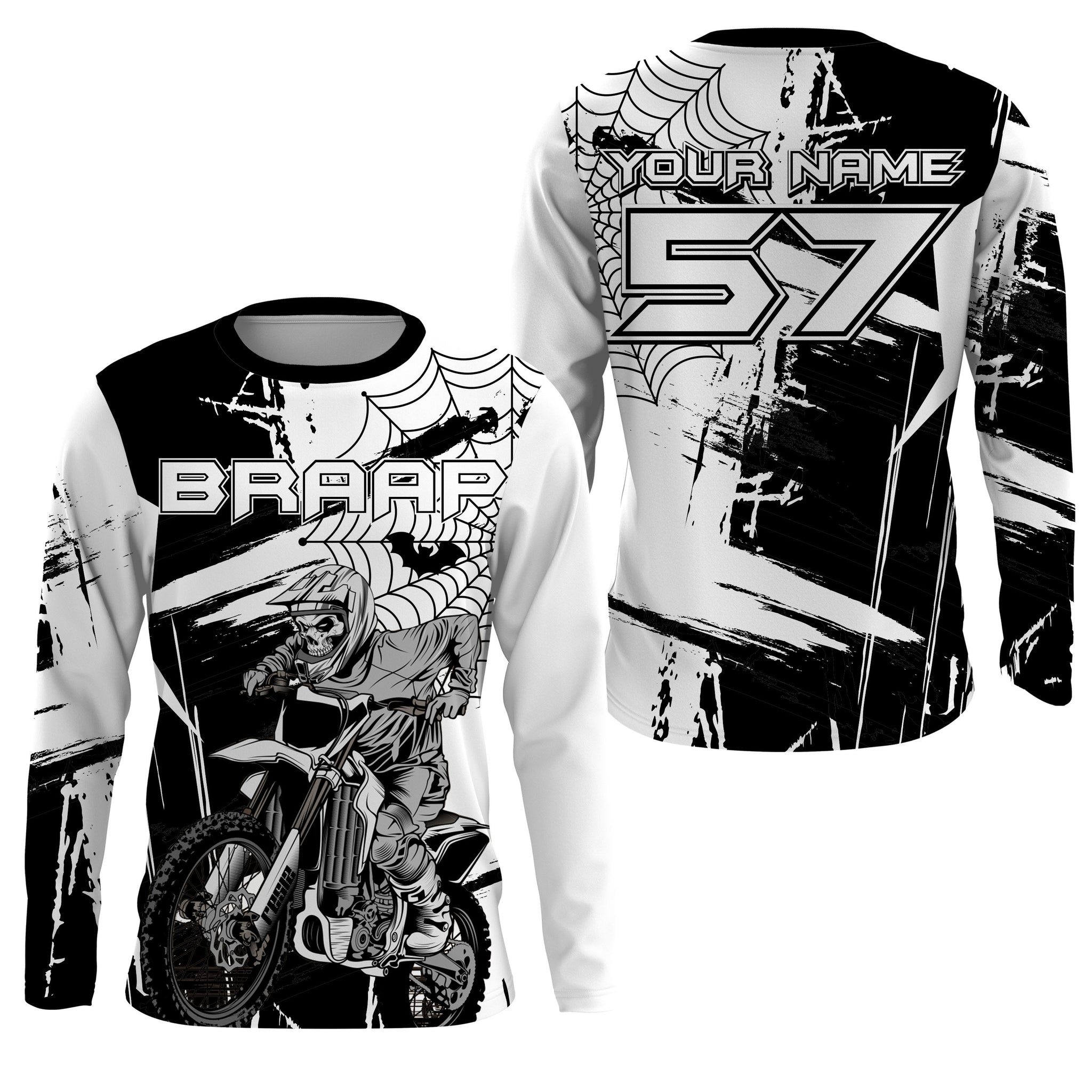 Skull black MX jersey Motocross kids adult custom dirt bike UPF30+ long sleeves off-road motorcycle PDT176