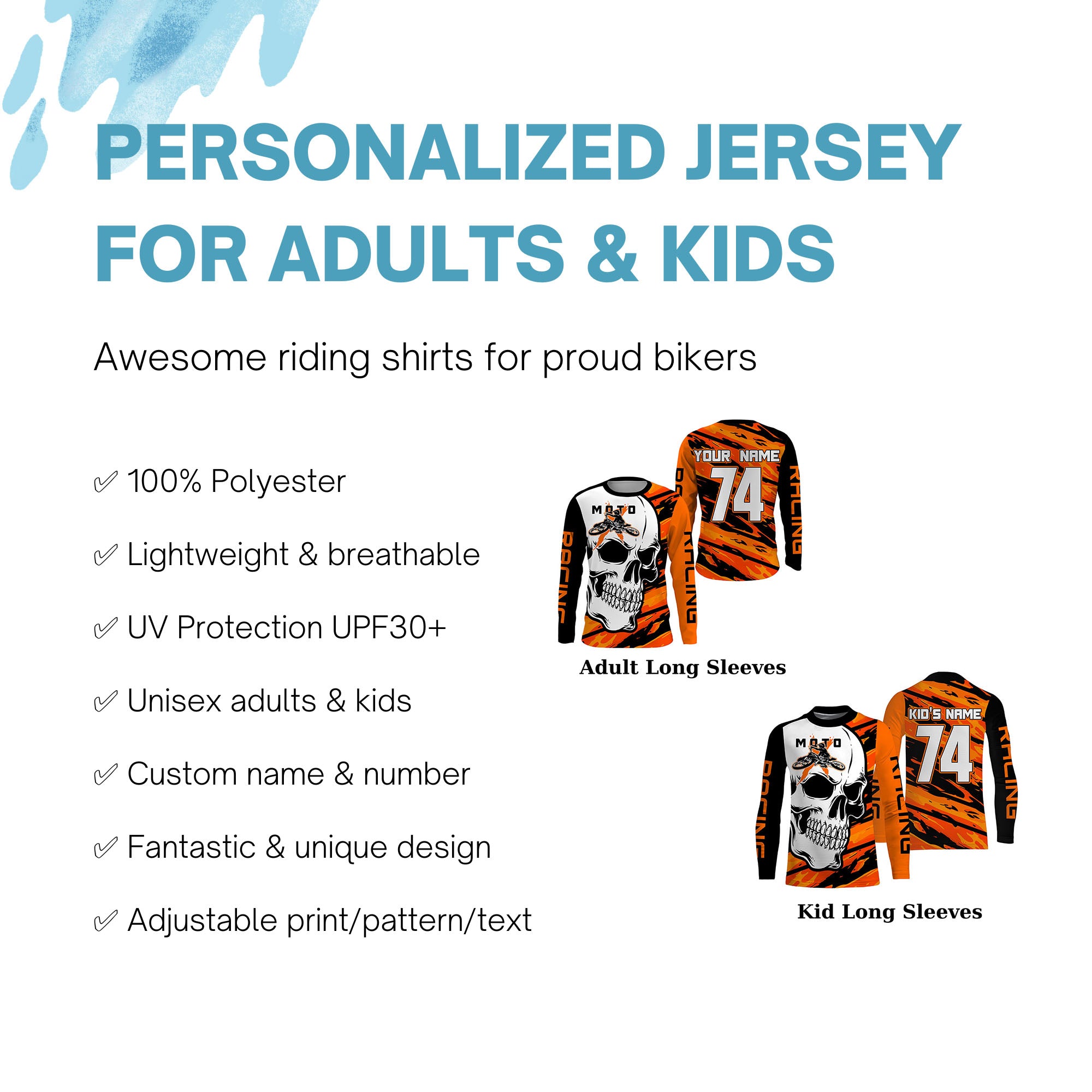 Skull MotoX Jersey Custom Motocross UPF30+ Orange Dirt Bike Racing Motorcycle Bikers Racewear NMS1263