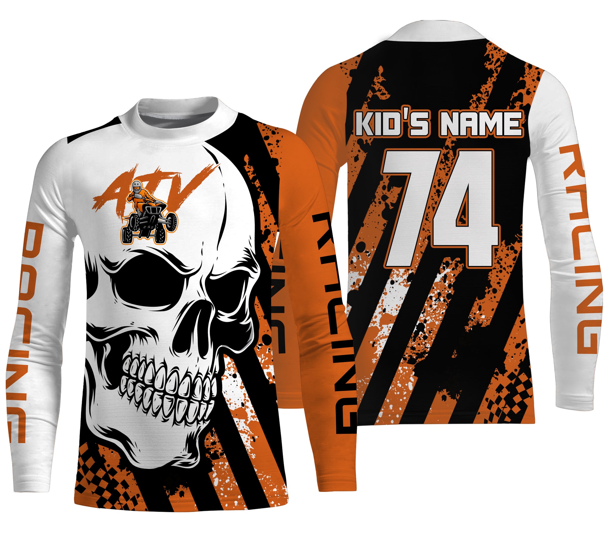 Skull Orange ATV Motocross Jersey Personalized UPF30+ Adult&Kid Quad Bike Shirt ATV MX Off-Road PDT729